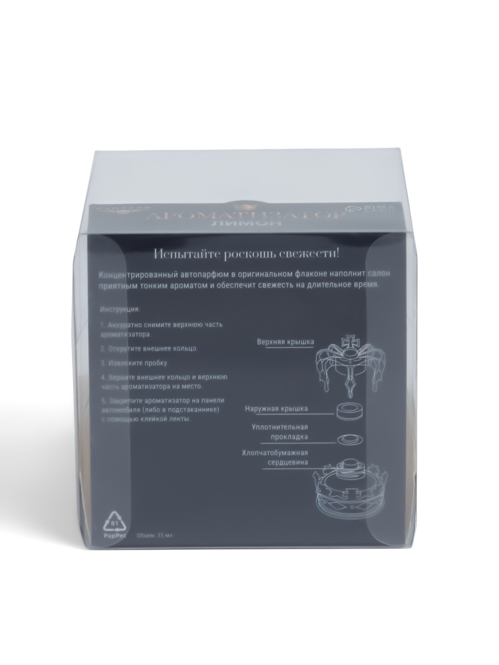 Размер упаковки: 9 x 9 x 9 см. Размер упаковки: 9 x 9 x 9 см. tnved: 3307490000 Аромат: Лимон Ароматизатор на панель "Корона", освежающий лимон это стильный и функциональный аксессуар, придающий салону автомобиля свежий цитрусовый аромат и изысканный внешний вид. Элегантная форма в виде короны подчёркивает вкус владельца, а насыщенный лимонный аромат наполняет пространство энергией и бодростью, создавая комфортную атмосферу во время каждой поездки. Преимущества: