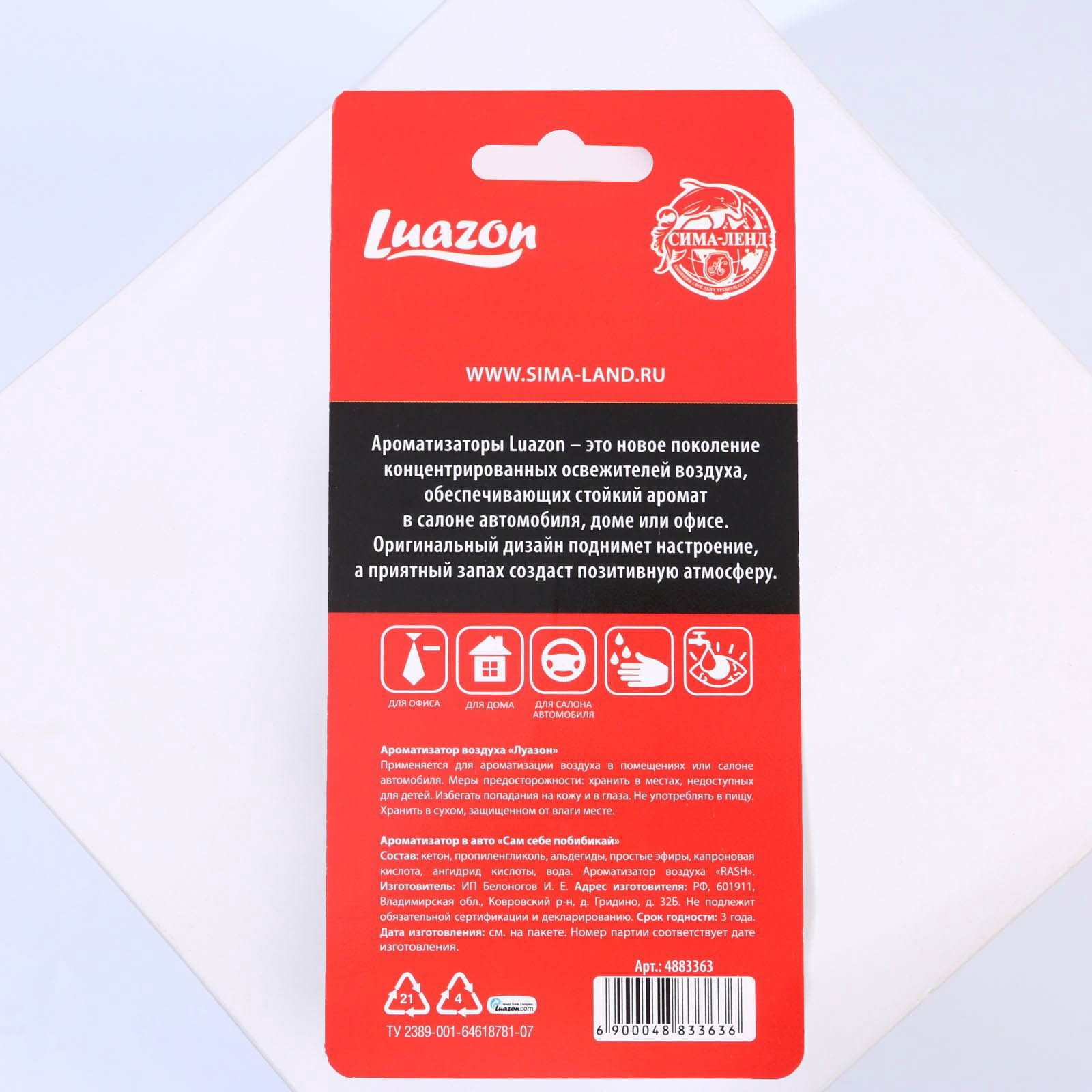 Ароматизатор в машину "Сам себе побибикай", аромат антитабак, Сима-ленд, Россия