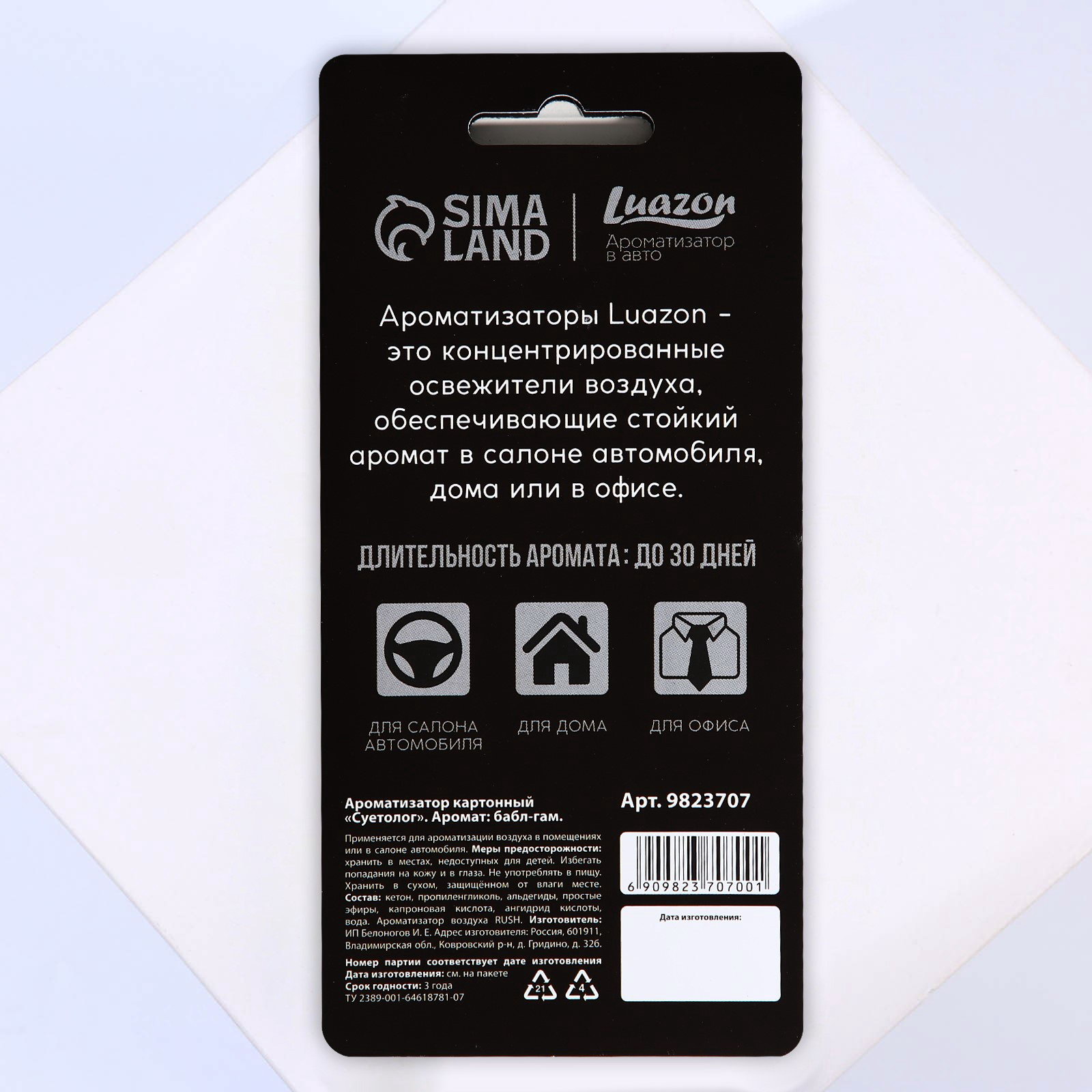 Ароматизатор в машину "Суетолог", аромат бабл-гам, Сима-ленд, Россия