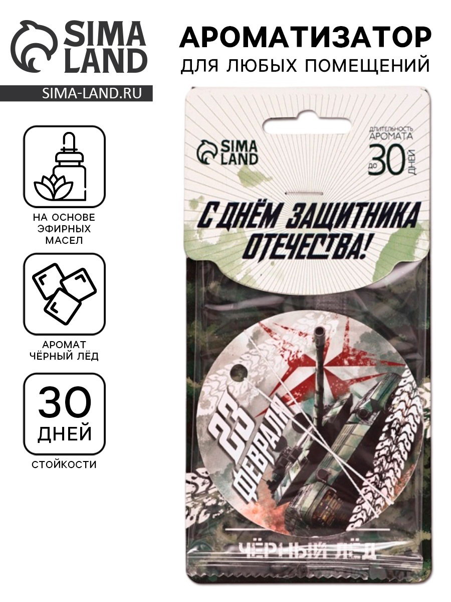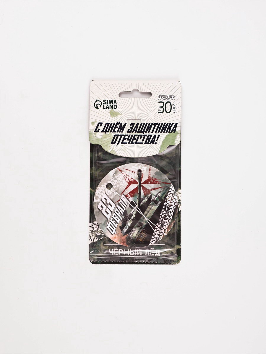 Ароматизатор в машину бумажный круглый "23 Февраля", аромат чёрный лёд, 7.5x16.5 см, Сима-ленд, Россия