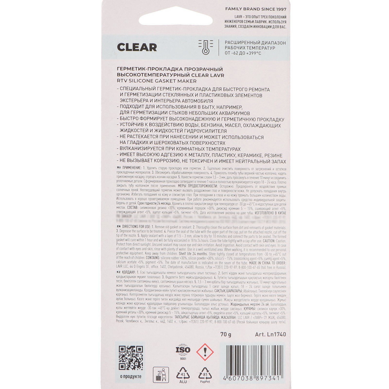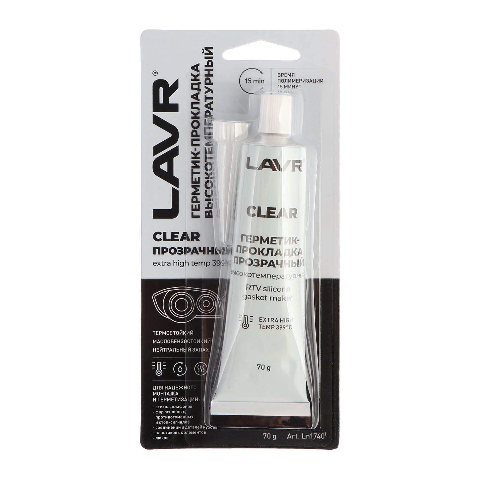 Герметик-прокладка CLEAR RTV, прозрачный, высокотемпературный, силиконовый,70 грLn1740, LAVR, Китай