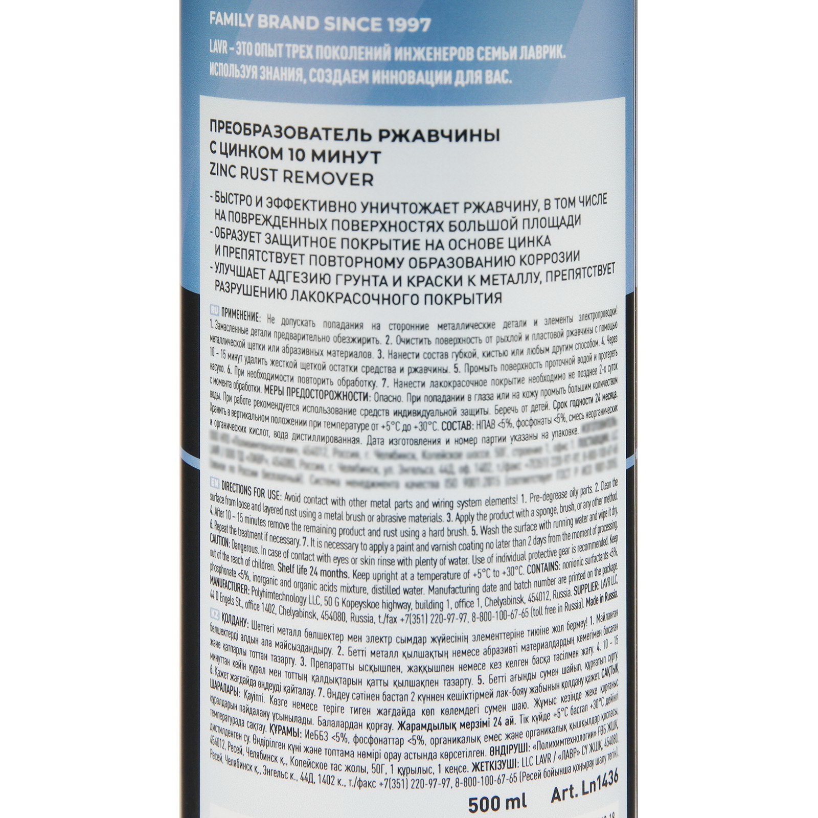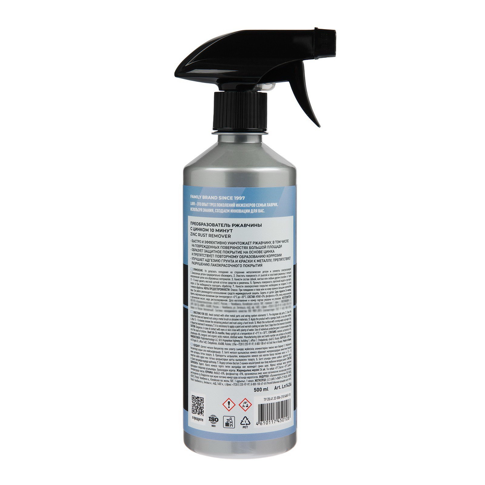 Преобразователь ржавчины с цинком, 500 мл, триггер, Ln1436, LAVR, Россия