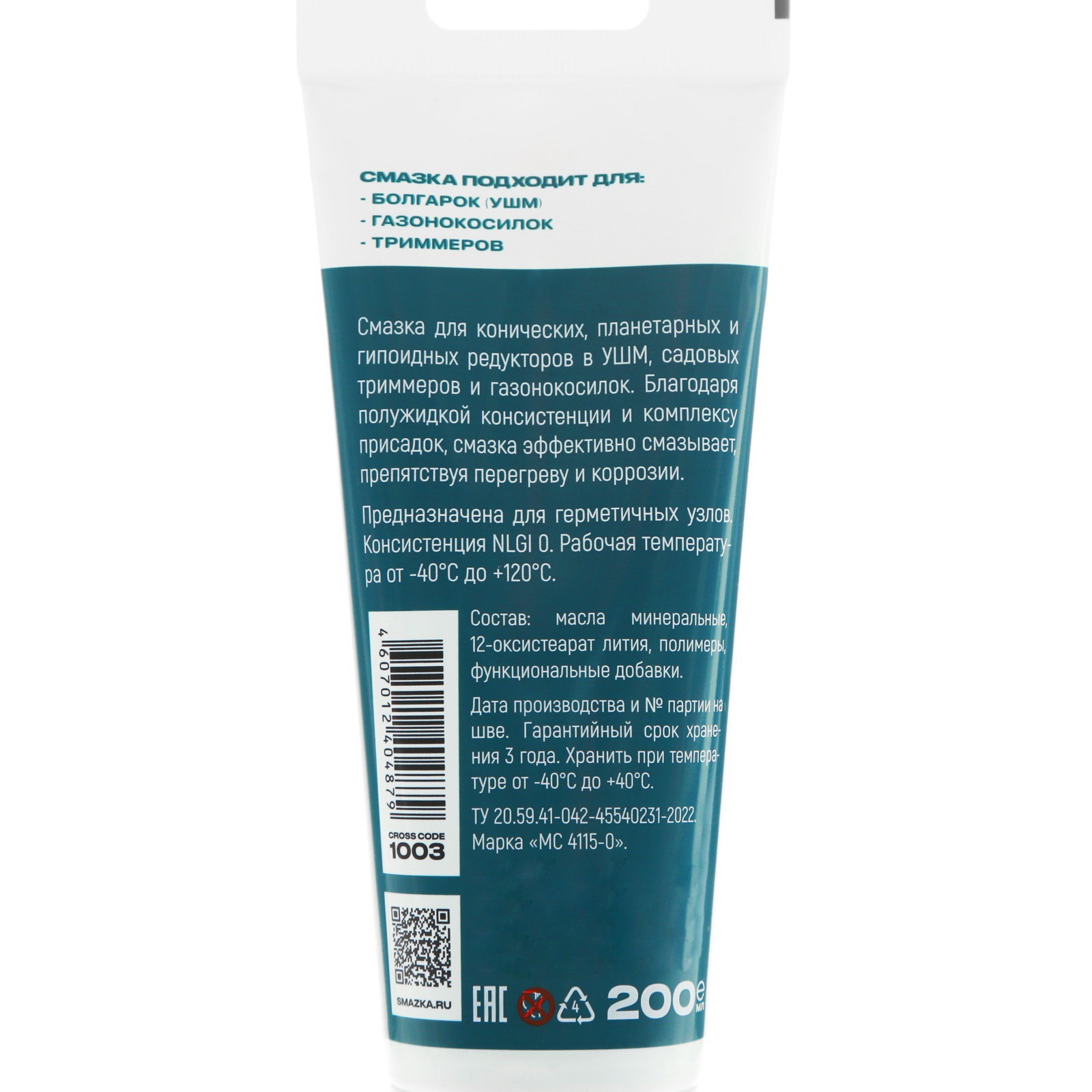 Смазка редукторов для электроинструмента ВМП Ultra-0 МС4115, 200 г, туба 1003, 200 мл., ВМПАвто, Россия