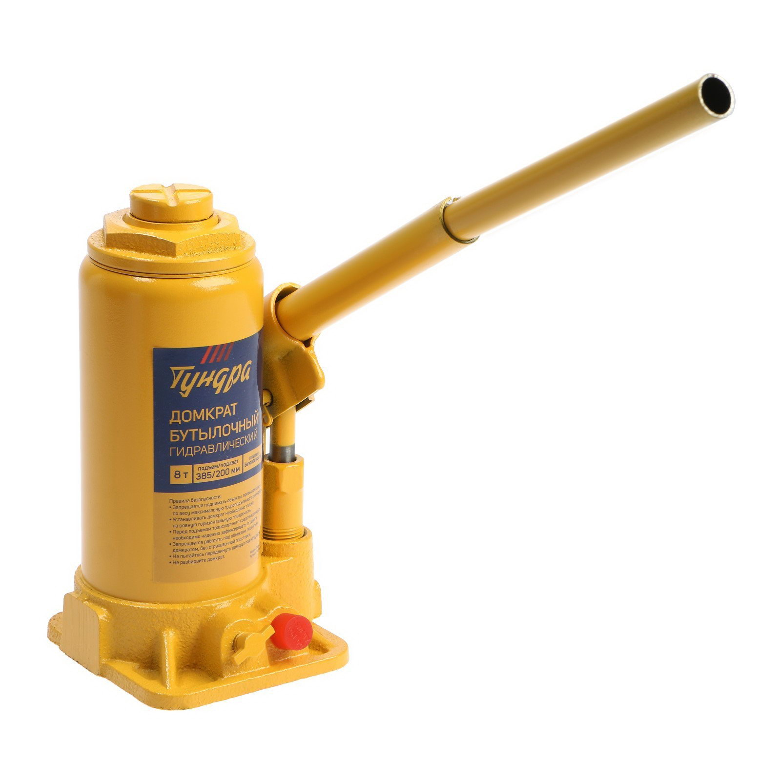 Домкрат бутылочный гидравлический второй клапан, подъем/подхват 385/200 мм, 8 т, ТУНДРА, Китай