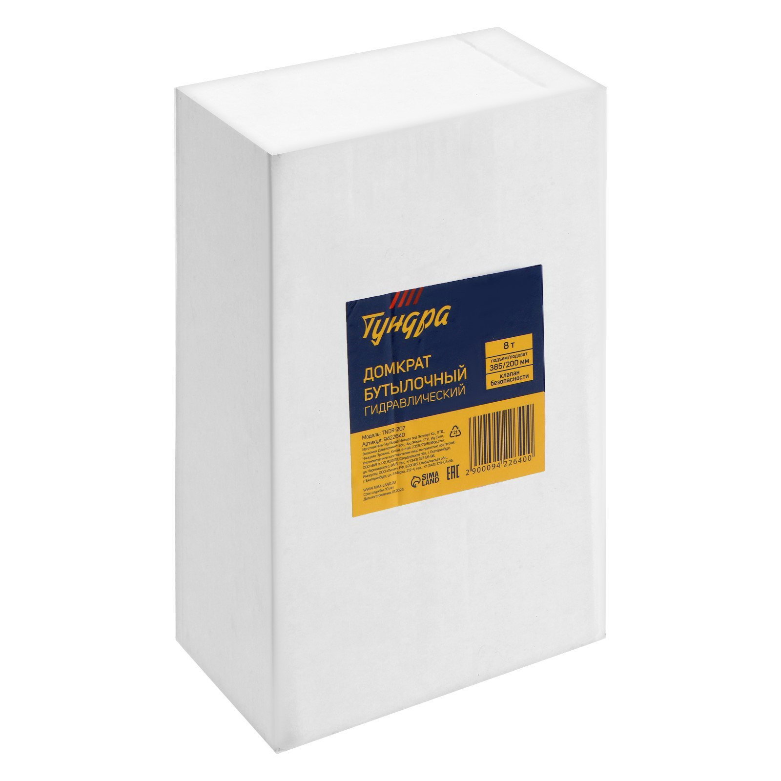 Размер упаковки: 13 x 21 x 12 см. Высота подхвата, мм: 200 Грузоподъёмность, т: 8 Высота подъёма, мм: 385 Высота подъёма, мм: 385 tnved: 8425420000 Поднимайте тяжелый груз с минимальными усилиями! Гидравлический бутылочный домкрат TUNDRA с двойным клапаном надежный помощник в ситуациях, требующих быстрой и безопасной замены колес или подъема тяжелых предметов. Особенно полезен в автомастерских и для личного использования автолюбителями.