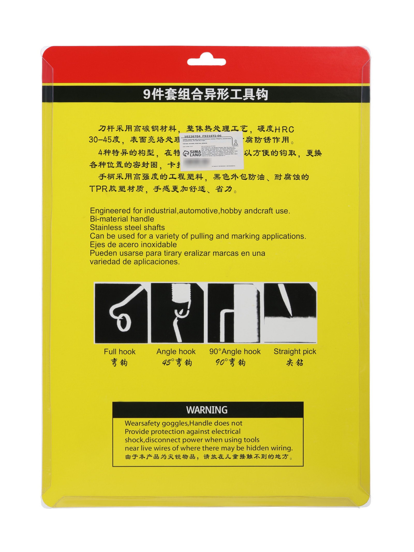 Набор крючков для уплотнительных колец усиленные, 2К рукоятки, 75-150 мм, 9 шт., ТУНДРА, Китай