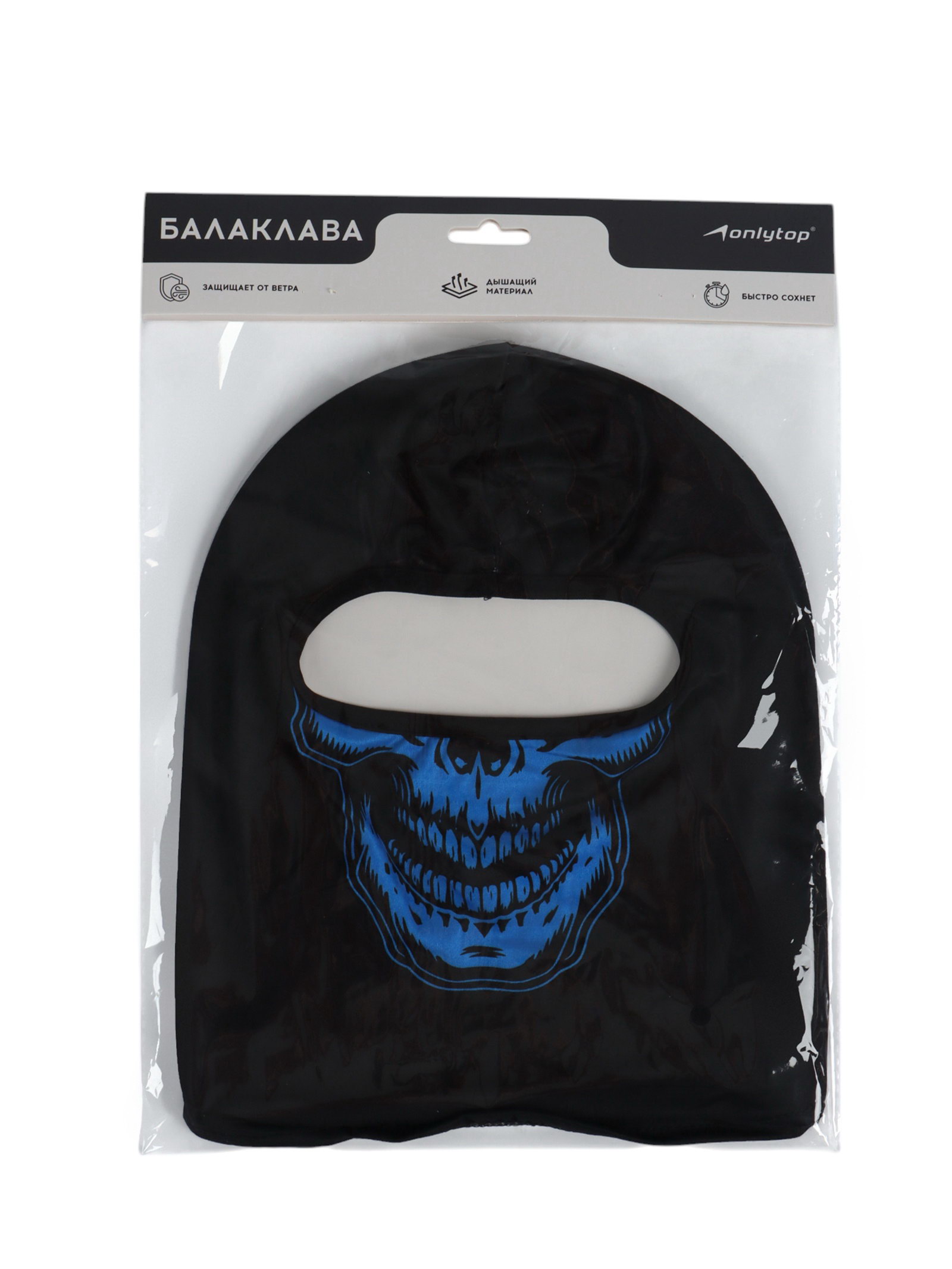 Маска-балаклава Cranium, размер универсальный, чёрная, 15x21x0.6 см., ONLYTOP, Китай