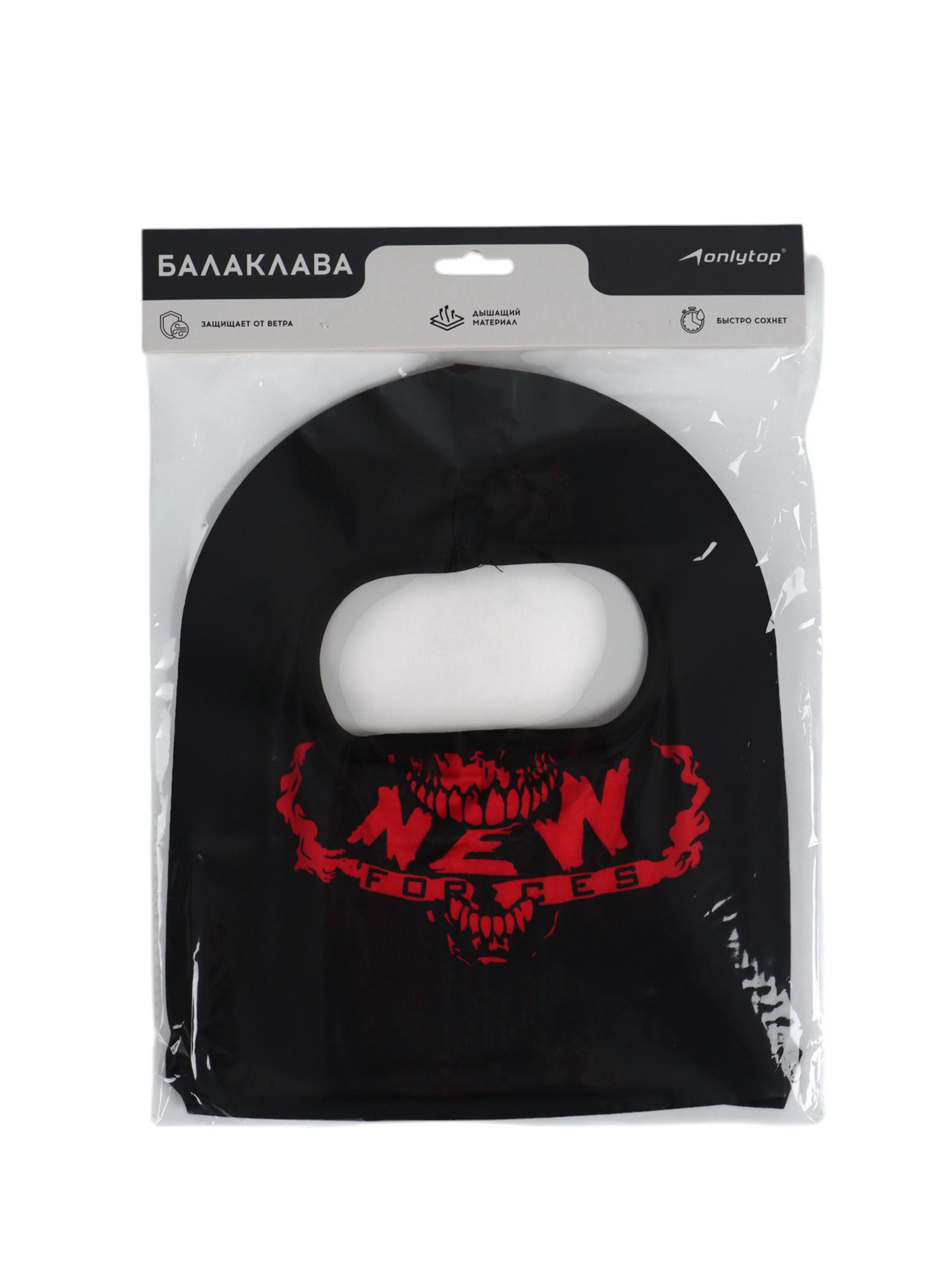 Маска - балаклава New Forces, размер ONE SIZE, чёрная, 15x21x0.6 см., ONLYTOP, Китай