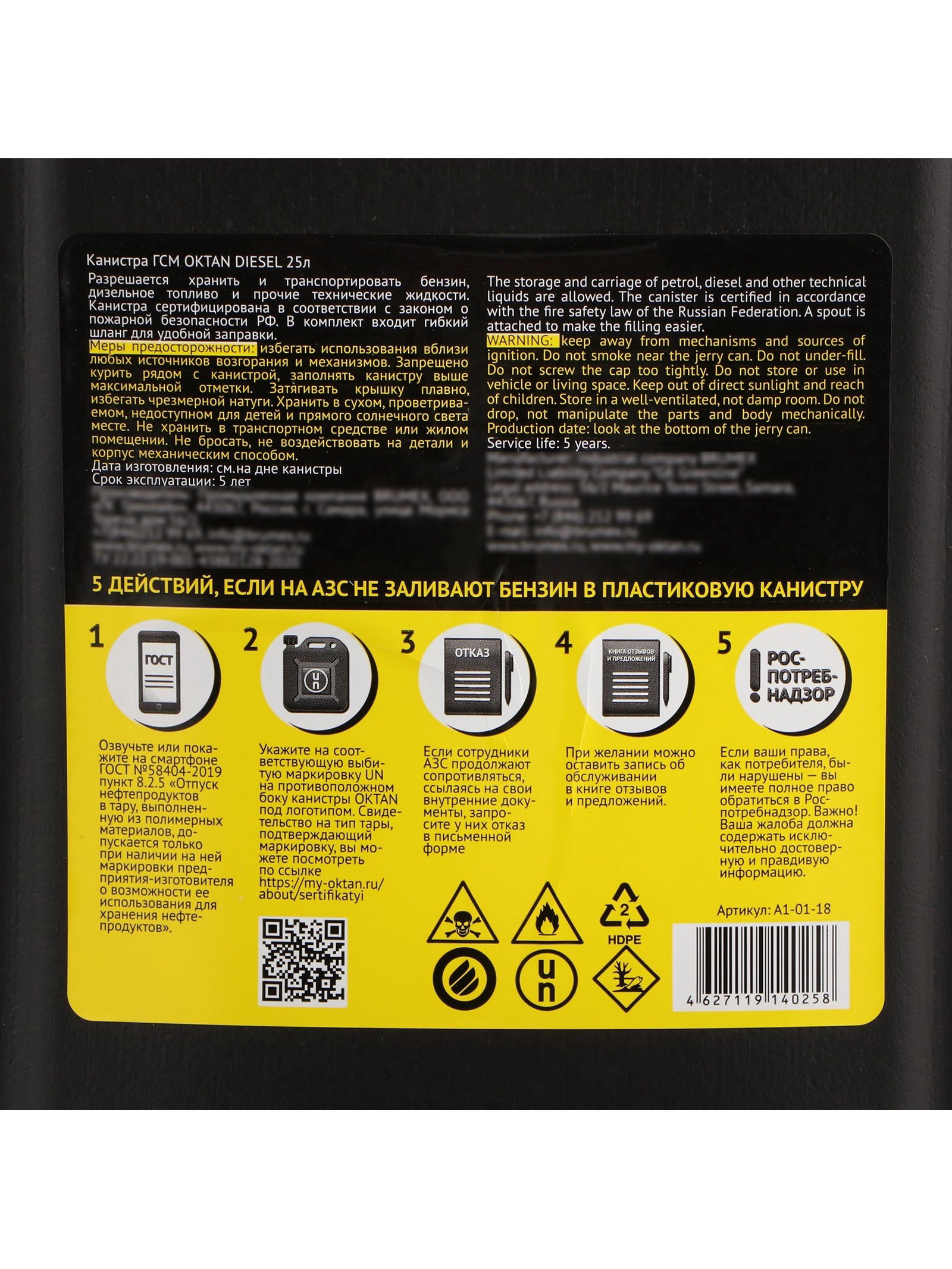 Канистра ГСМ DIESEL, 25 л, пластиковая, черная, Oktan, Россия