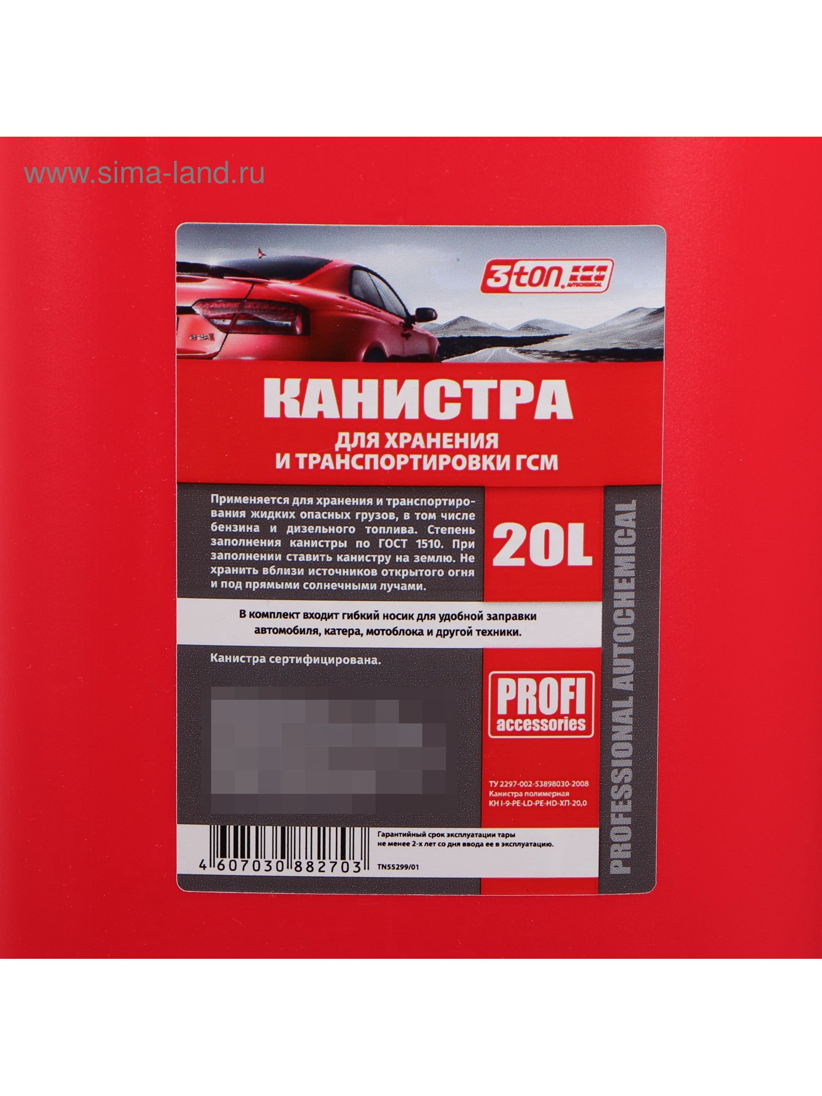Размер упаковки: 17 x 44 x 36 см. tnved: 3923309000 Температурное ограничение: Нет Объём канистры, л: 20 Тип: Канистра Цвет: Красный Запрет реализации по сегментам: 00000000208 Компактное и практичное решение для хранения топлива Универсальная пластиковая канистра объёмом 20 литров надёжный помощник для автомобилистов, мотоциклистов, владельцев садовой техники и дачников. Благодаря компактным размерам она идеально подходит для транспортировки небольшого объёма топлива и легко помещается в багажник автомобиля, ящик с инструментами или рюкзак. Продуманная конструкция для вашего удобства Изделие выполнено из прочного пластика, устойчивого к агрессивным жидкостям, перепадам температур и механическим воздействиям. Удобная встроенная ручка обеспечивает комфорт при переноске, а герметичная крышка надёжно защищает от протечек. В комплект также входит гибкая лейка, которая позволяет аккуратно и без расплескивания переливать топливо даже в труднодоступные баки. Преимущества канистры: