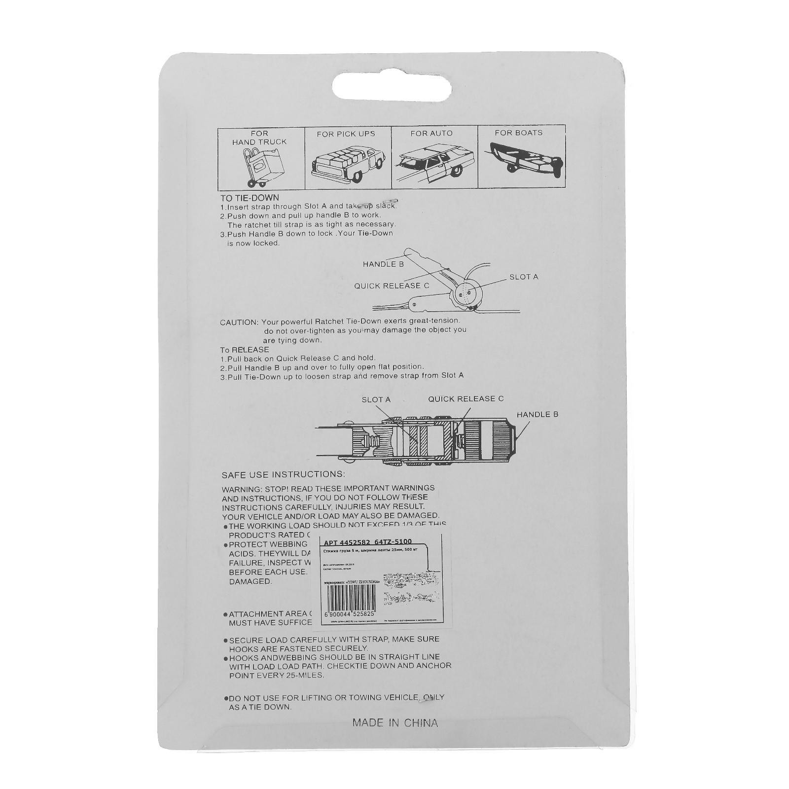 Стяжка груза 4 м, ширина ленты 25 мм, 500 кг, 14x20.8x4.8 см., Китай