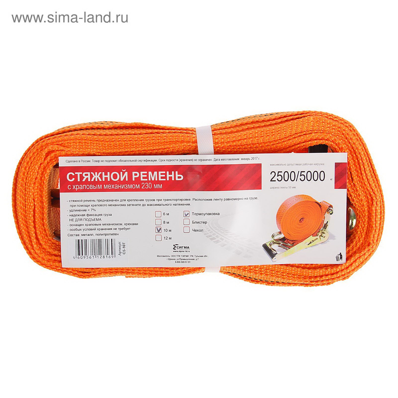Стяжка груза с механизмом 230 мм, ширина ленты 50 мм, нагрузка 2500/5000 кг, длина 10 м, Сигма, Россия