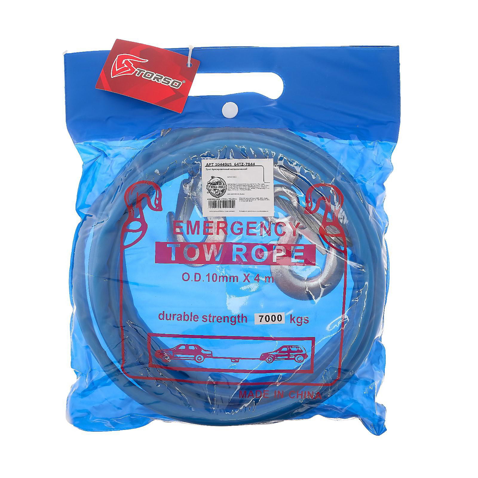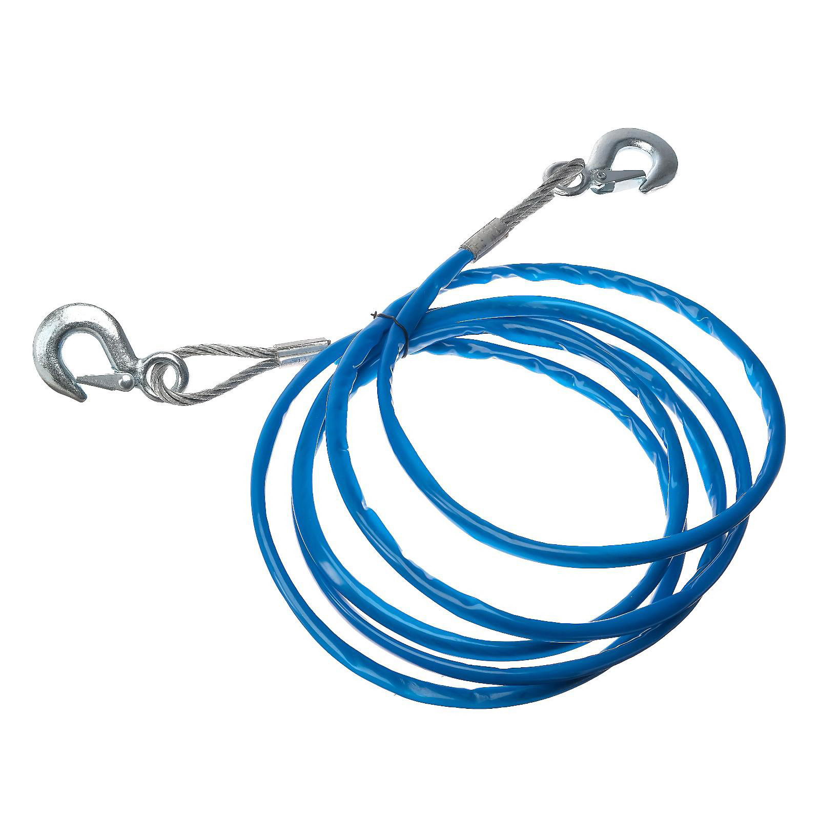 Трос буксировочный металлический в ПВХ оплётке, 4 м, 7 тонн, 2 крюка, 26x23x4 см., TORSO, Китай