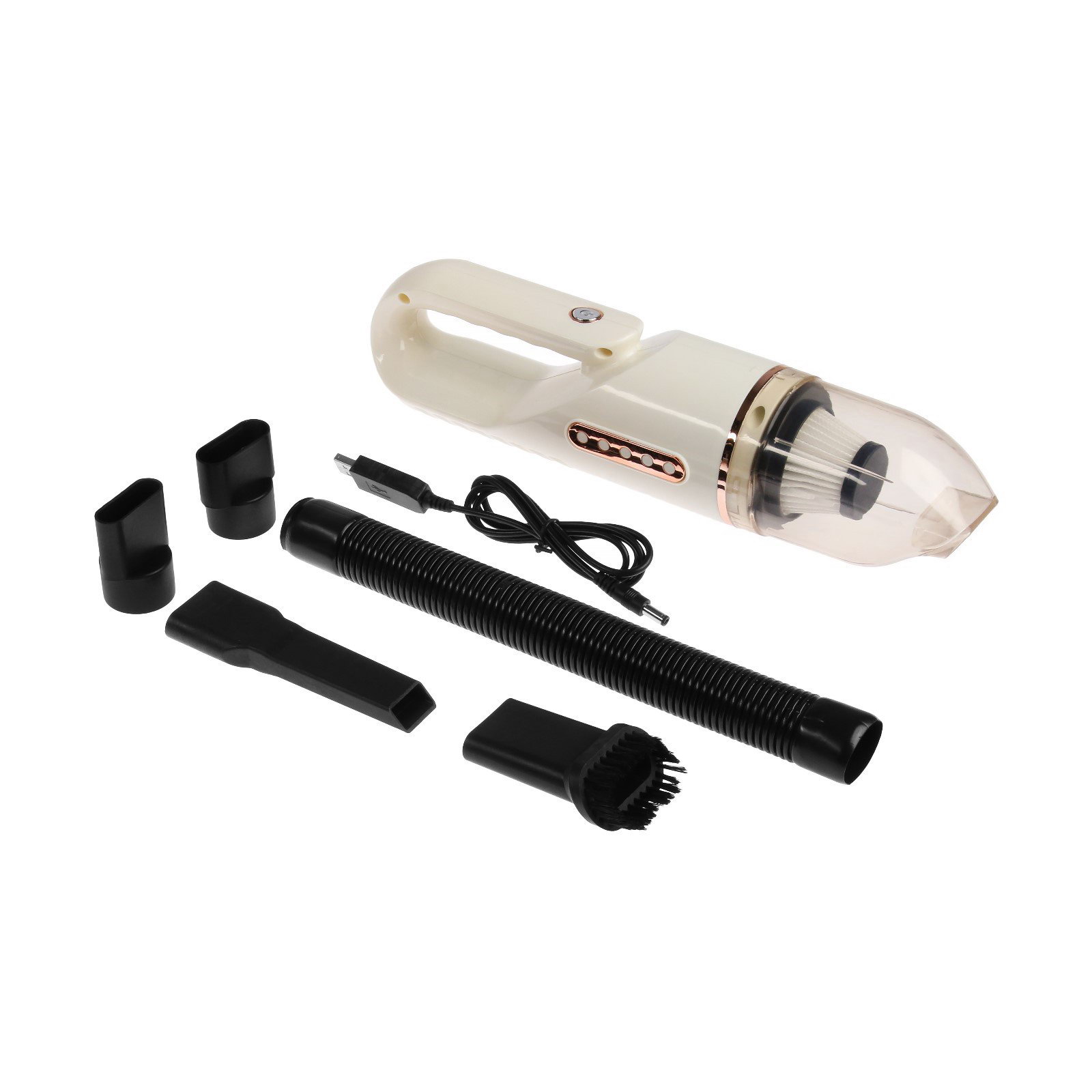 Пылесос автомобильный, беспроводной, 4 насадки, 120 Вт, 12 В, белый, 10x33x10 см., Китай