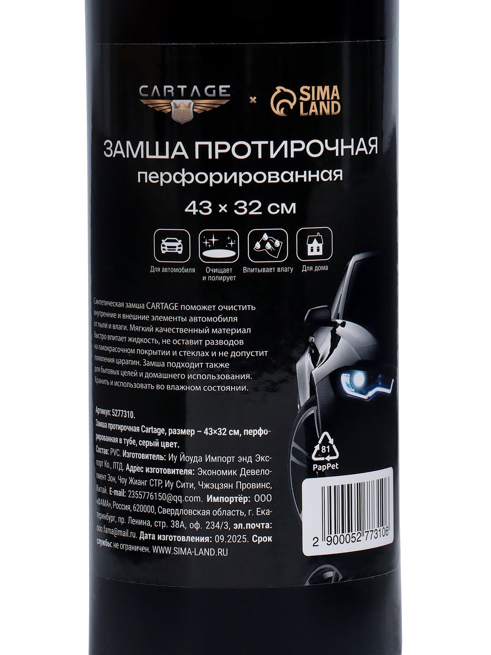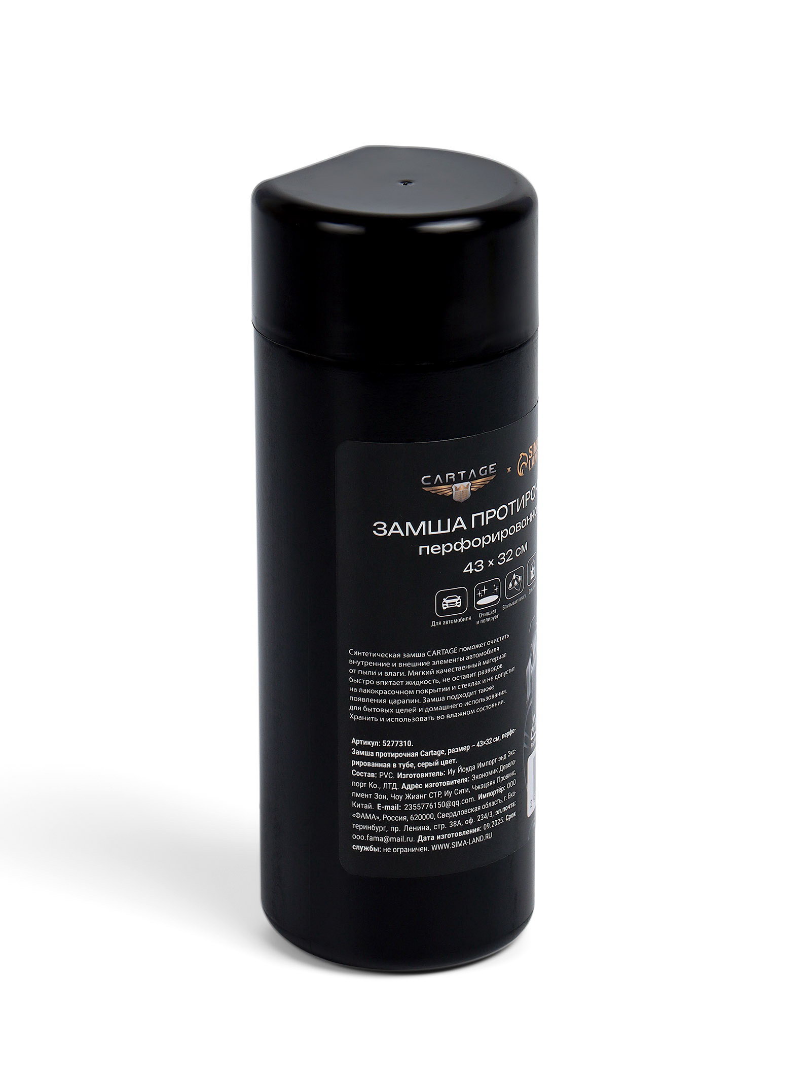 Замша протирочная 43x32 см, перфорированная, в тубе, серая, 6x5.5x16.5 см., Cartage, Китай