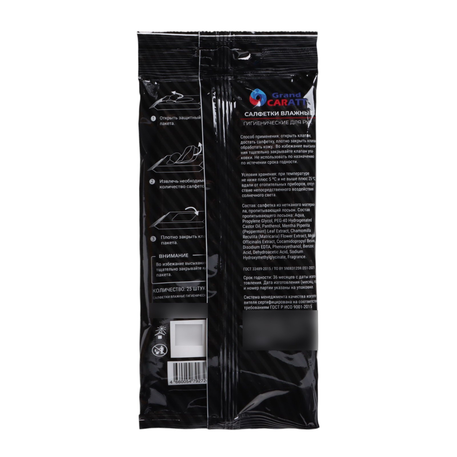 Влажные салфетки для рук целлюлозное волокно, 25 шт, Grand Caratt, Беларусь