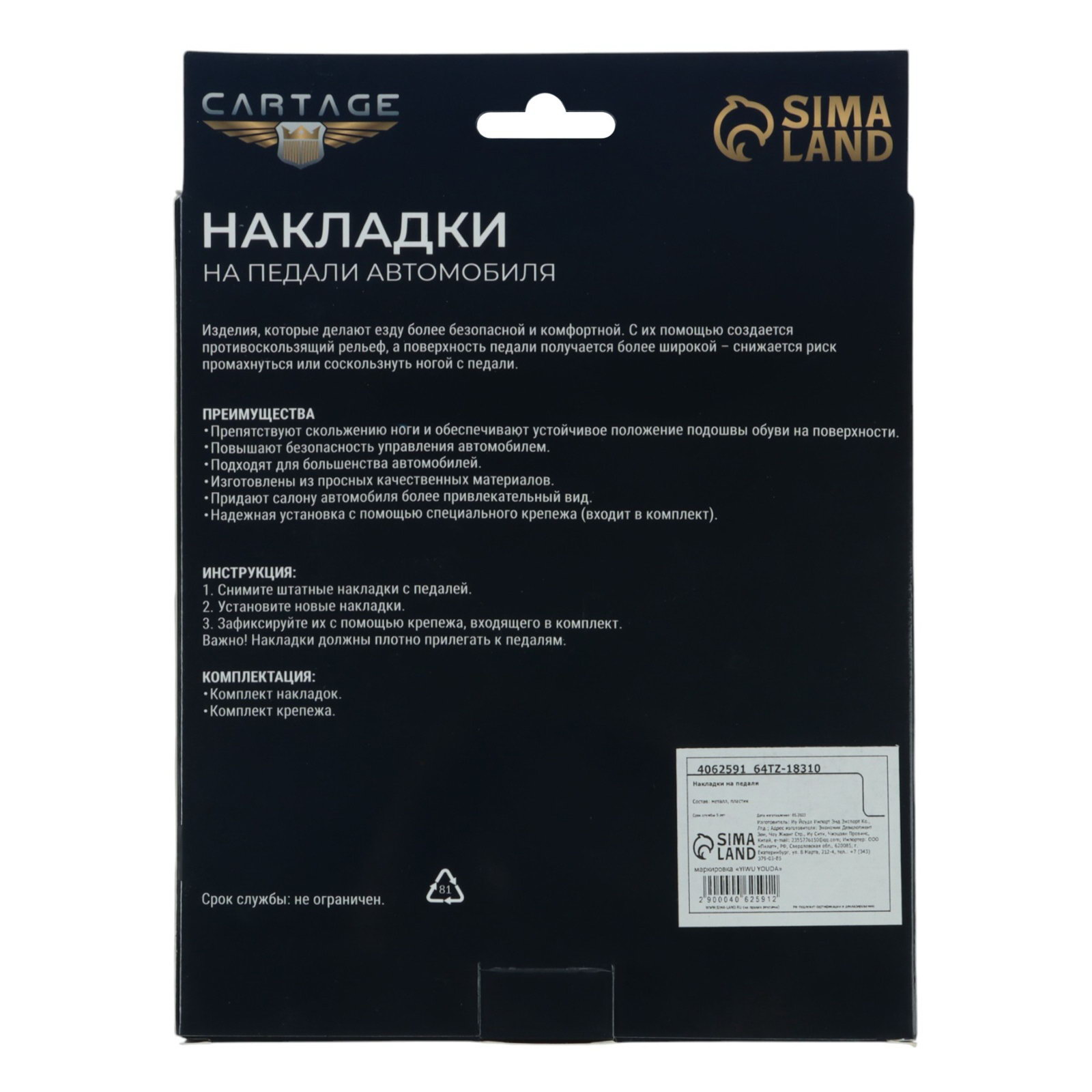 Размер упаковки: 16.5 x 2 x 22 см. tnved: 7326909400 tnved: 7326909400 Цвет: Хромированный В наборе, шт.: 2 Препятствует скольжению ноги и обеспечивает устойчивое положение подошва обуви на поверхности педали. Повышает безопасность управления автомобилем. Подходит для большинства автомобилей. Изготовлены из прочных качественных материалов. Придают салону автомобиля более привлекательный вид. Надежная установка с помощью специального крепежа (входит в комплект) Размер накладок: