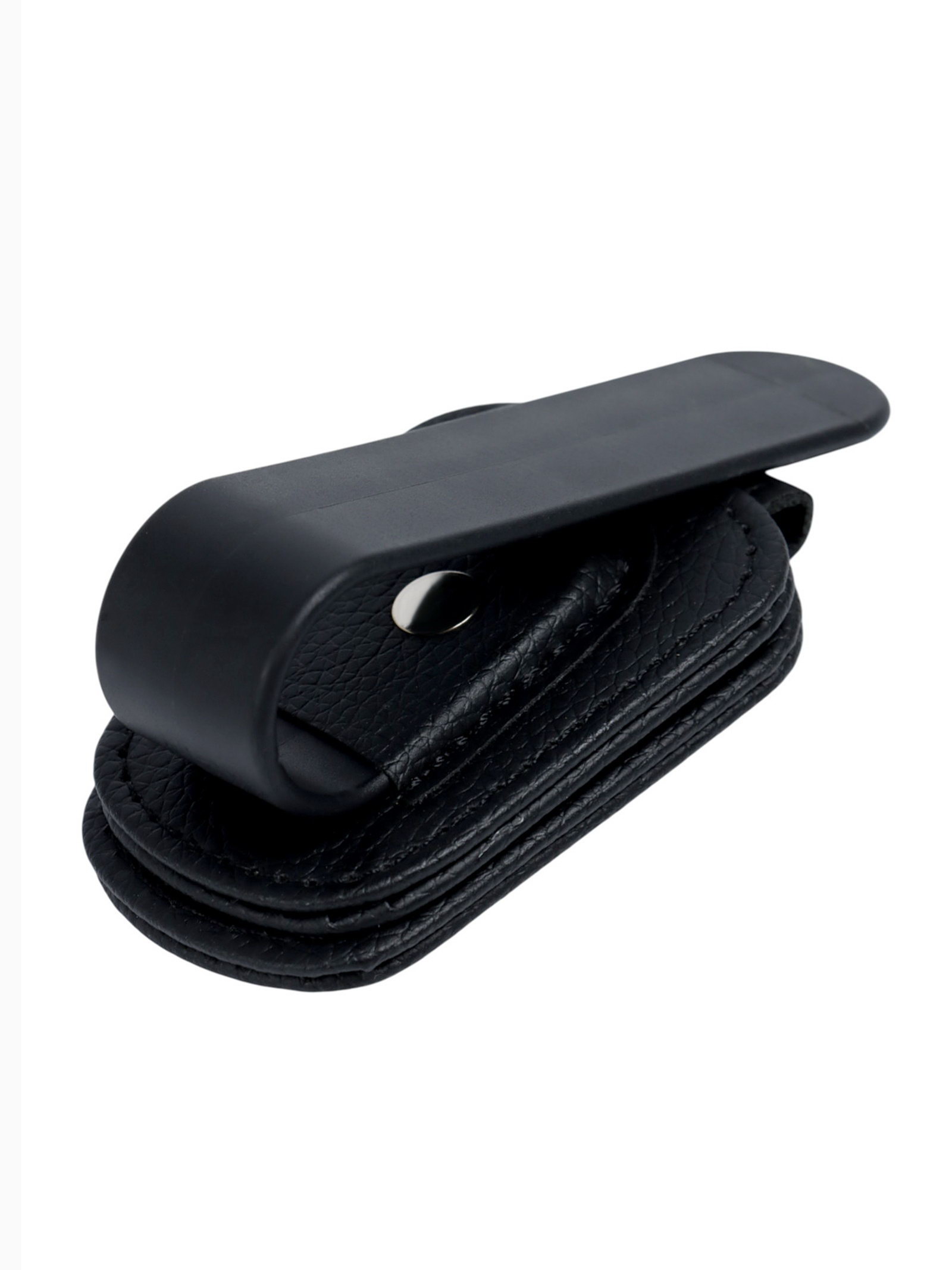 Держатель для очков автомобильный, кожа, черный, 4x9x3.5 см., Китай