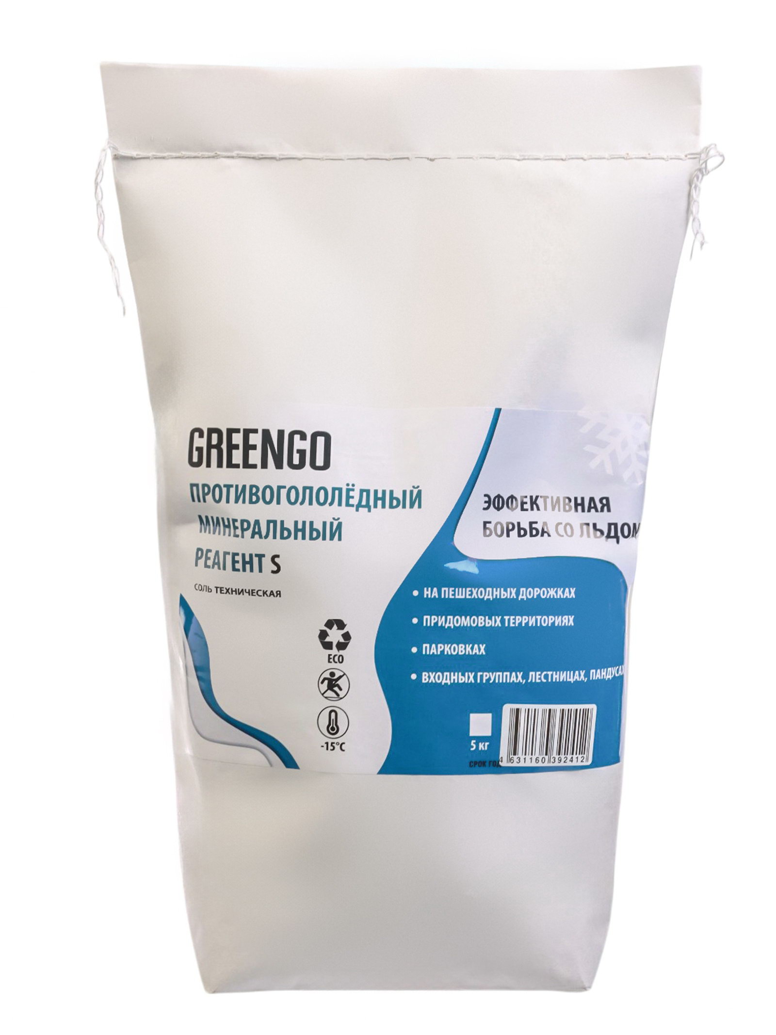 Реагент противогололёдный, соль техническая, 5 кг, работает при – 15 °C, в мешке, Greengo, Россия