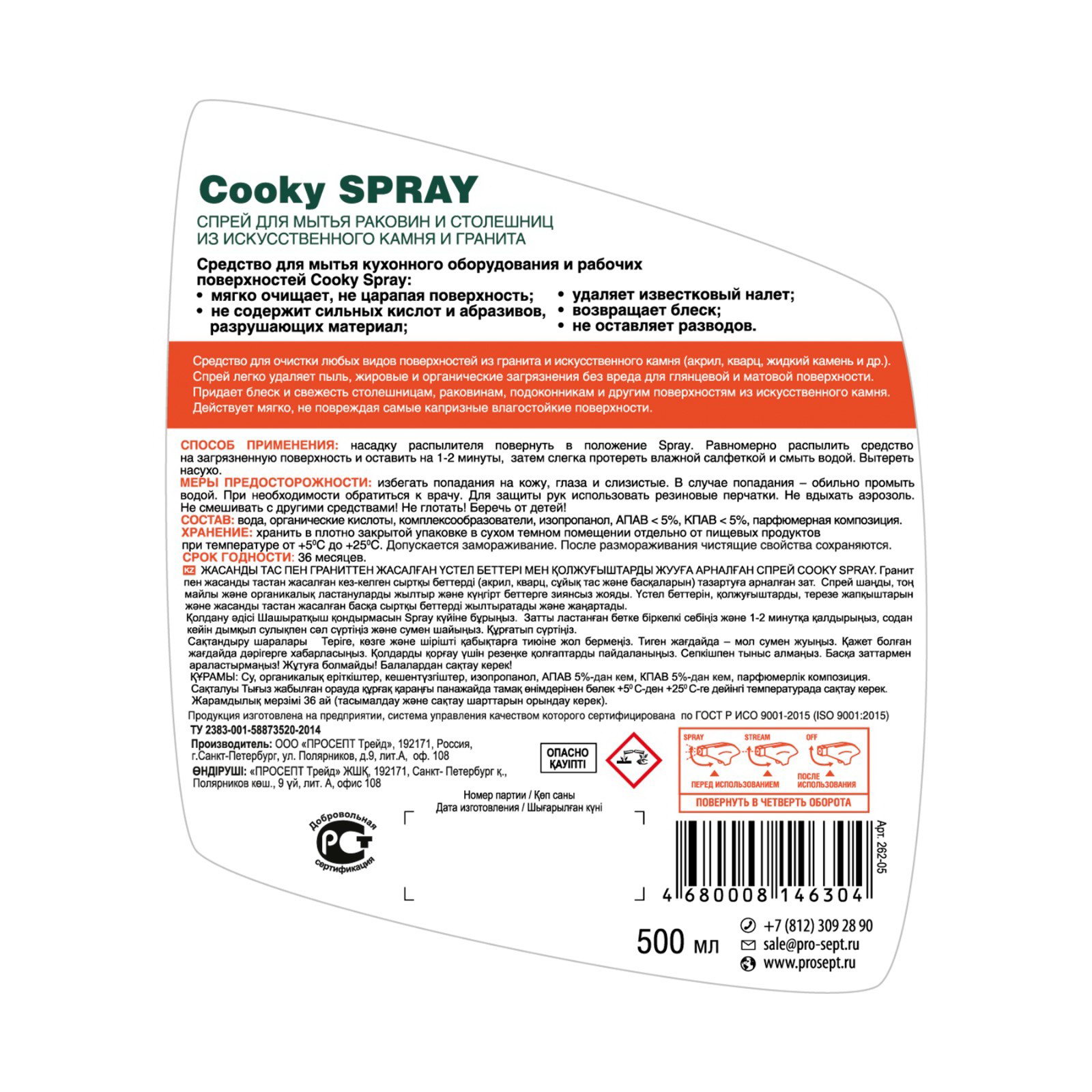 Чистящее средство Cooky Spray, спрей, для столешниц и раковин из искусственного камня и гранита, 500 мл, 500 мл., PROSEPT, Россия