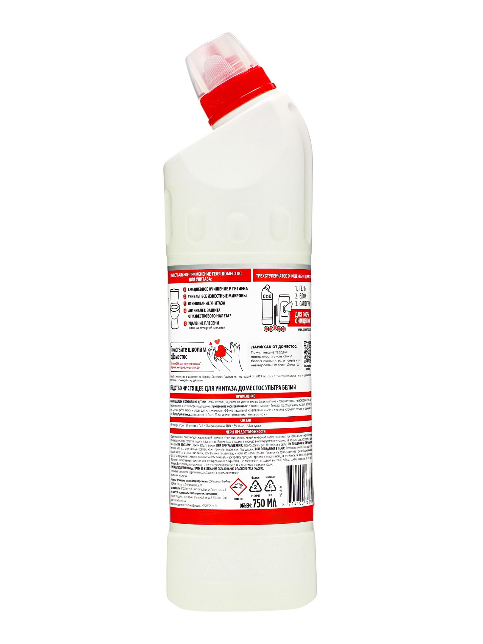 Чистящее средство Domestos "Ультра белый", гель, для унитаза, 750 мл, 6x8x29 см., Доместос, Россия
