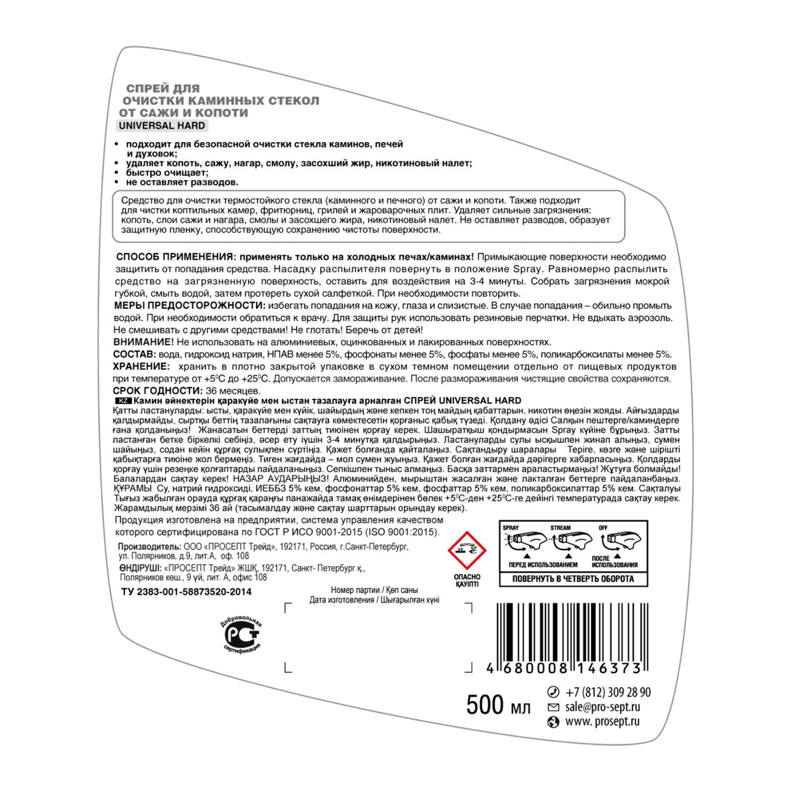 Чистящее средство Universal Hard, спрей, для очистки каминных стекол от сажи и копоти, 500 мл, 500 мл., PROSEPT, Россия