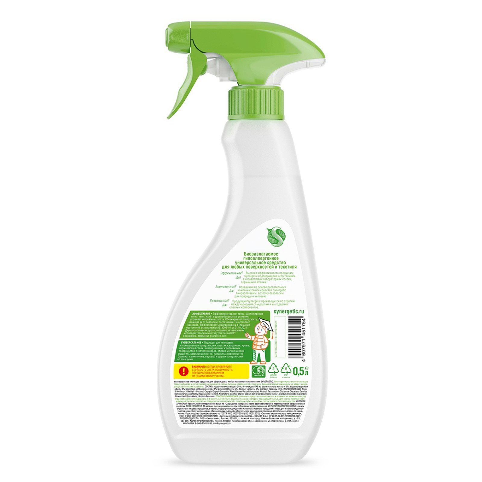 Средство чистящее для уборки дома, любых поверхностей и текстиля, гипоаллергенное, универсальное, 0.5 л, 500 мл., Synergetic, Россия