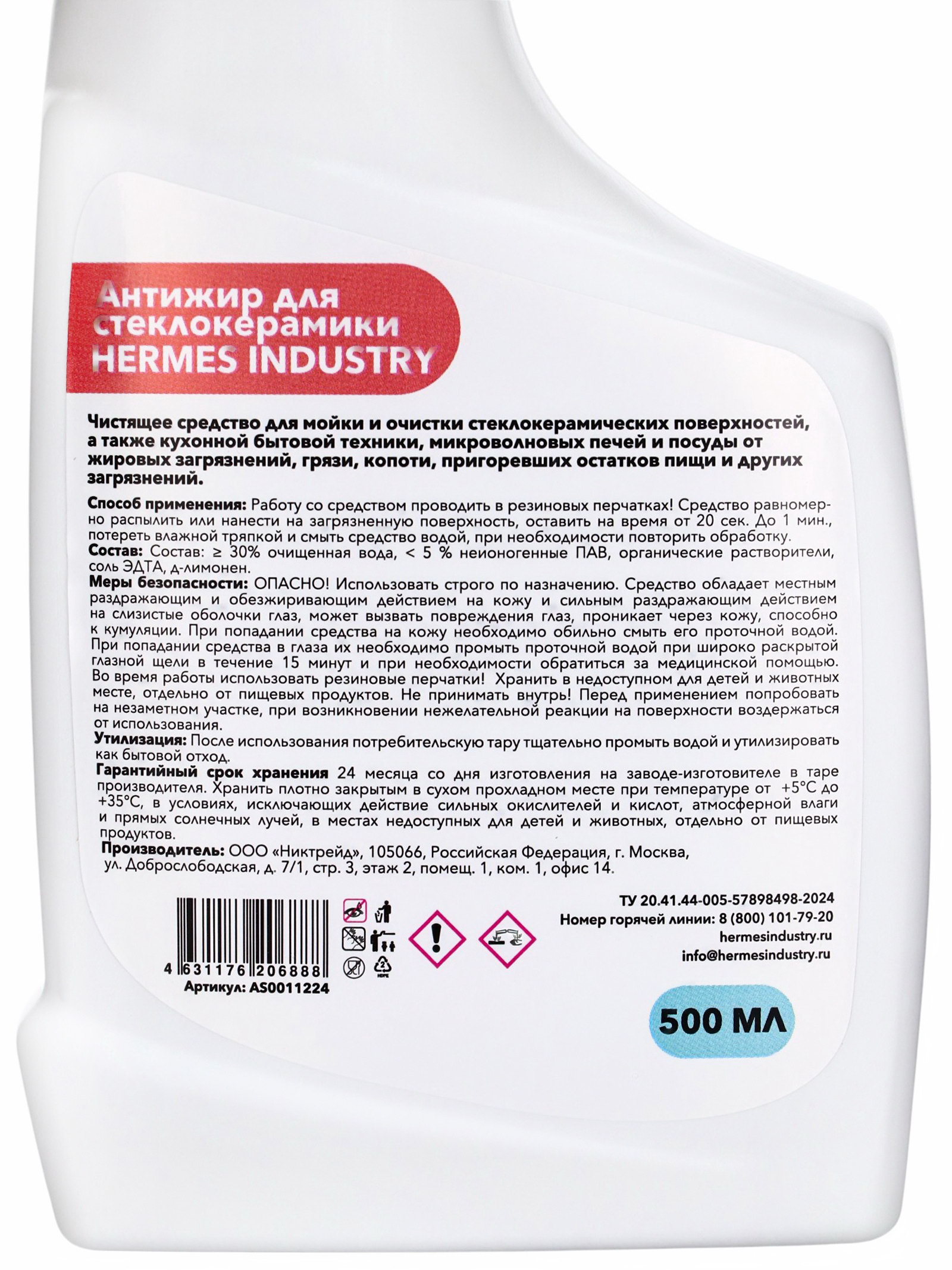 Антижир для стеклокерамики 500 мл, 500 мл., Hermes industry, Россия