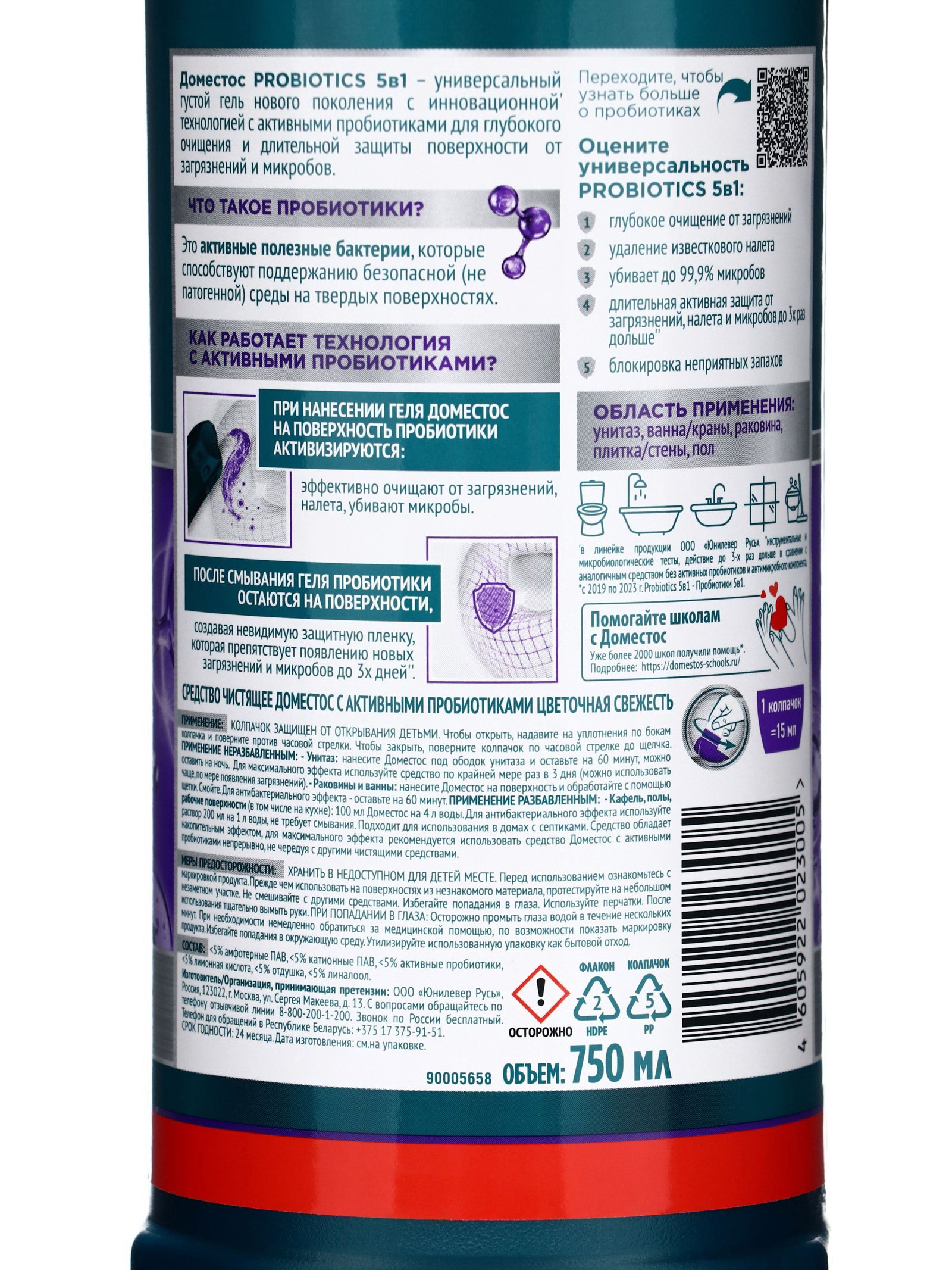 DOMESTOS средство чистящее, цветочная свежесть с активными пробиотиками 750МЛ, 750 мл., Доместос, Россия
