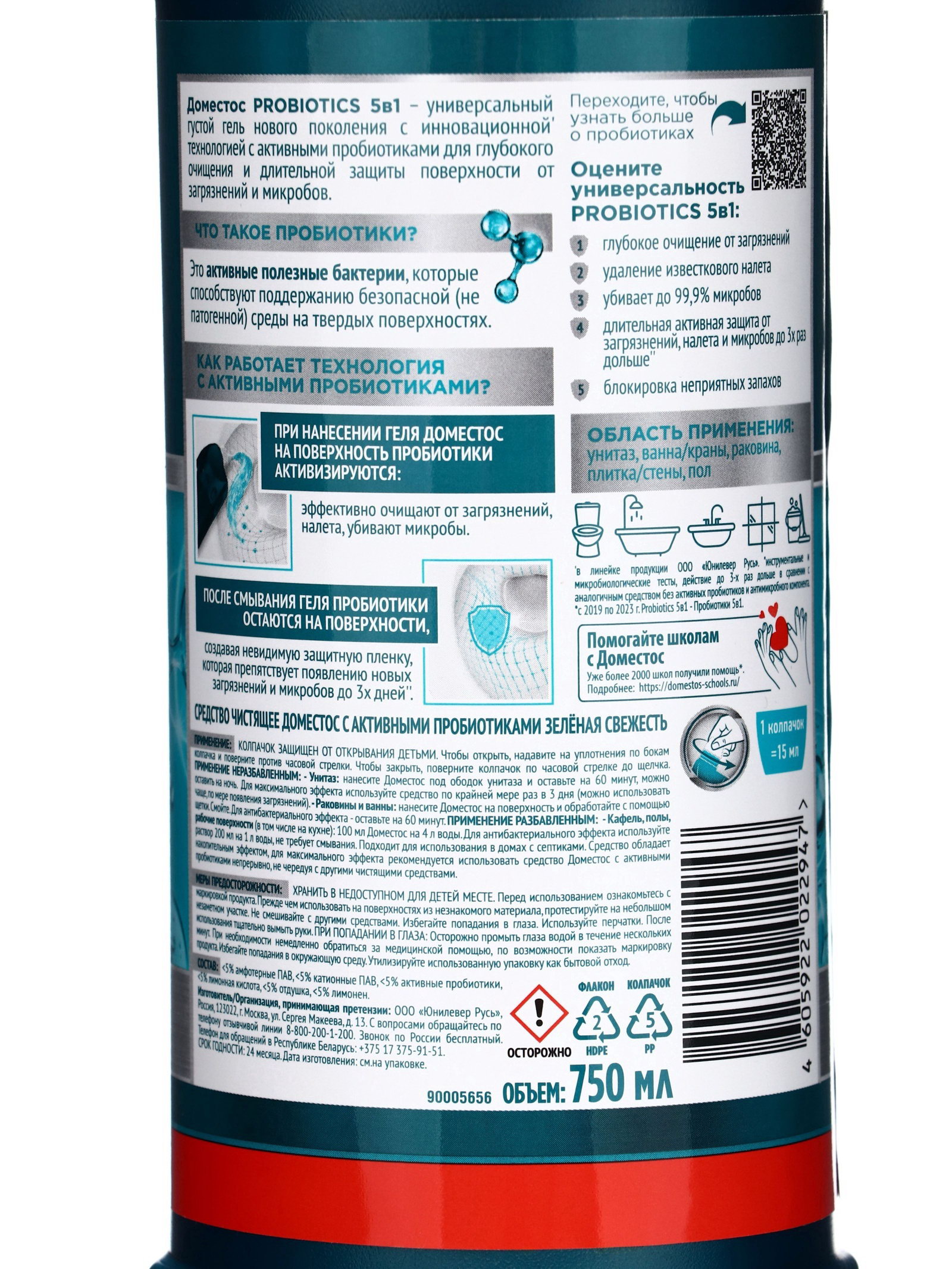 DOMESTOS средство чистящее, зеленая свежесть с активными пробиотиками 750 мл, 750 мл., Доместос, Россия