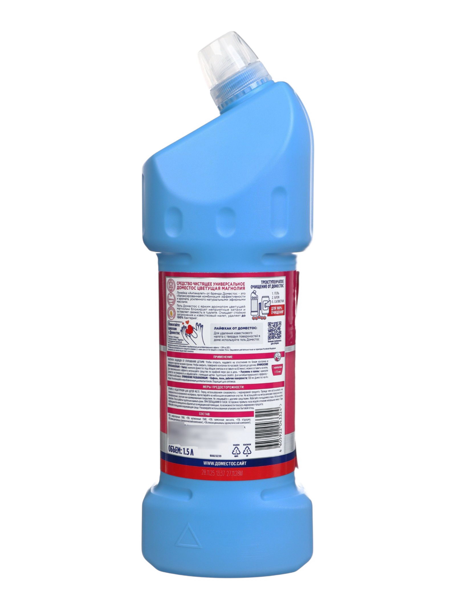 Меры предосторожности:Избегать попадания в глаза и на кожу. При попадании немедленно промыть водой. Не смешивать с другими чистящими средствами. Использовать в хорошо проветриваемом помещении. Хранить в недоступном для детей месте. Средство Domestos "Цветущая магнолия" это надёжный помощник для поддержания чистоты, блеска и свежести в доме каждый день. | ||