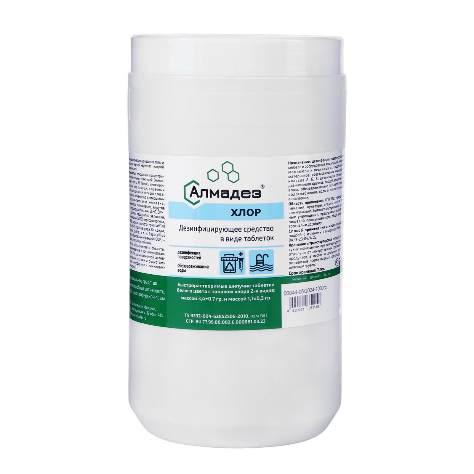 Дезинфицирующее средство "Алмадез-хлор", 300 таблеток, 1 кг, 1000 мл., Алмадез, Россия