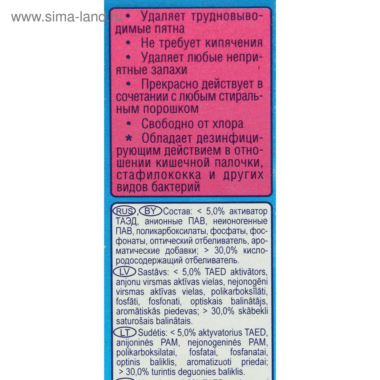 Применяйте его с моющими средствами при замачивании, кипячении и машинной стирке. | ||