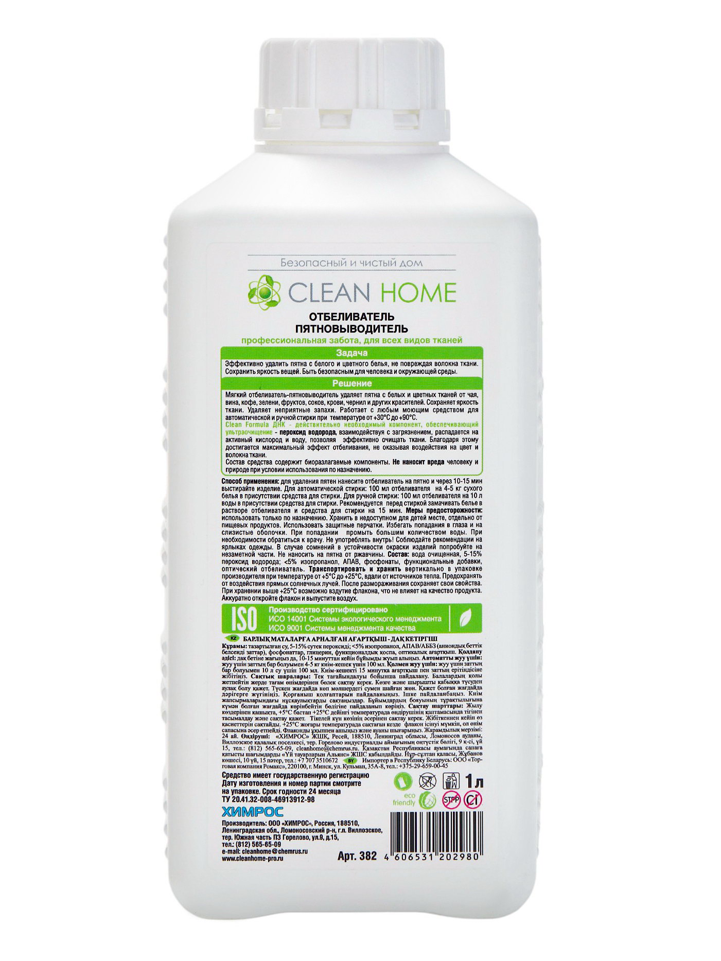 Отбеливатель гель, для тканей, 1 л, Clean home, Россия