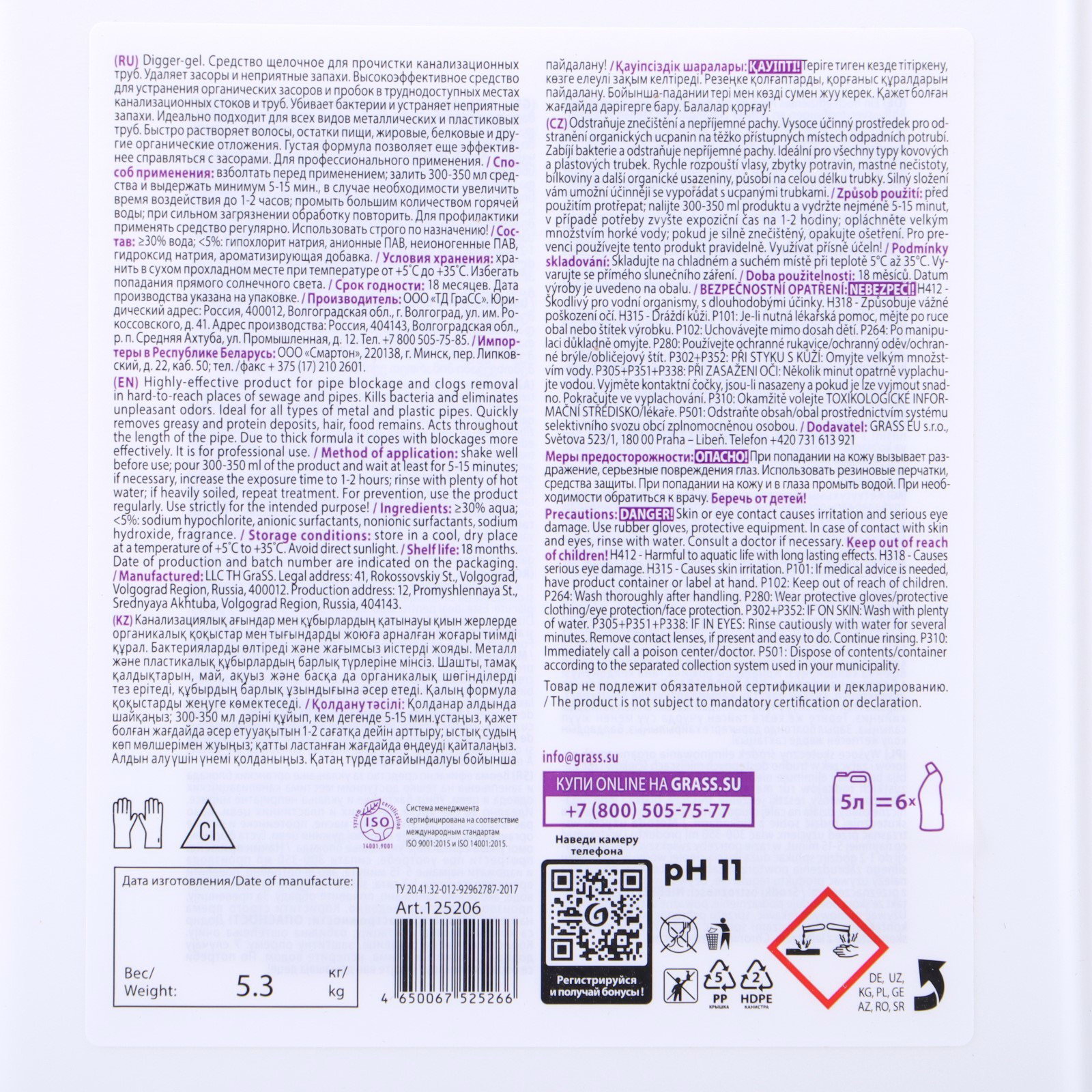 Средство для прочистки труб Digger-Gel, гель, 5.3 л, GRASS, Россия