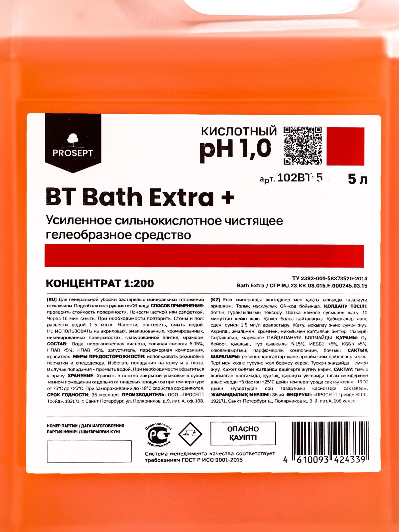 Сильнокислотное чистящее средство BT Bath Extra+, усиленное, концентрат, гель, 5 л, PROSEPT, Россия