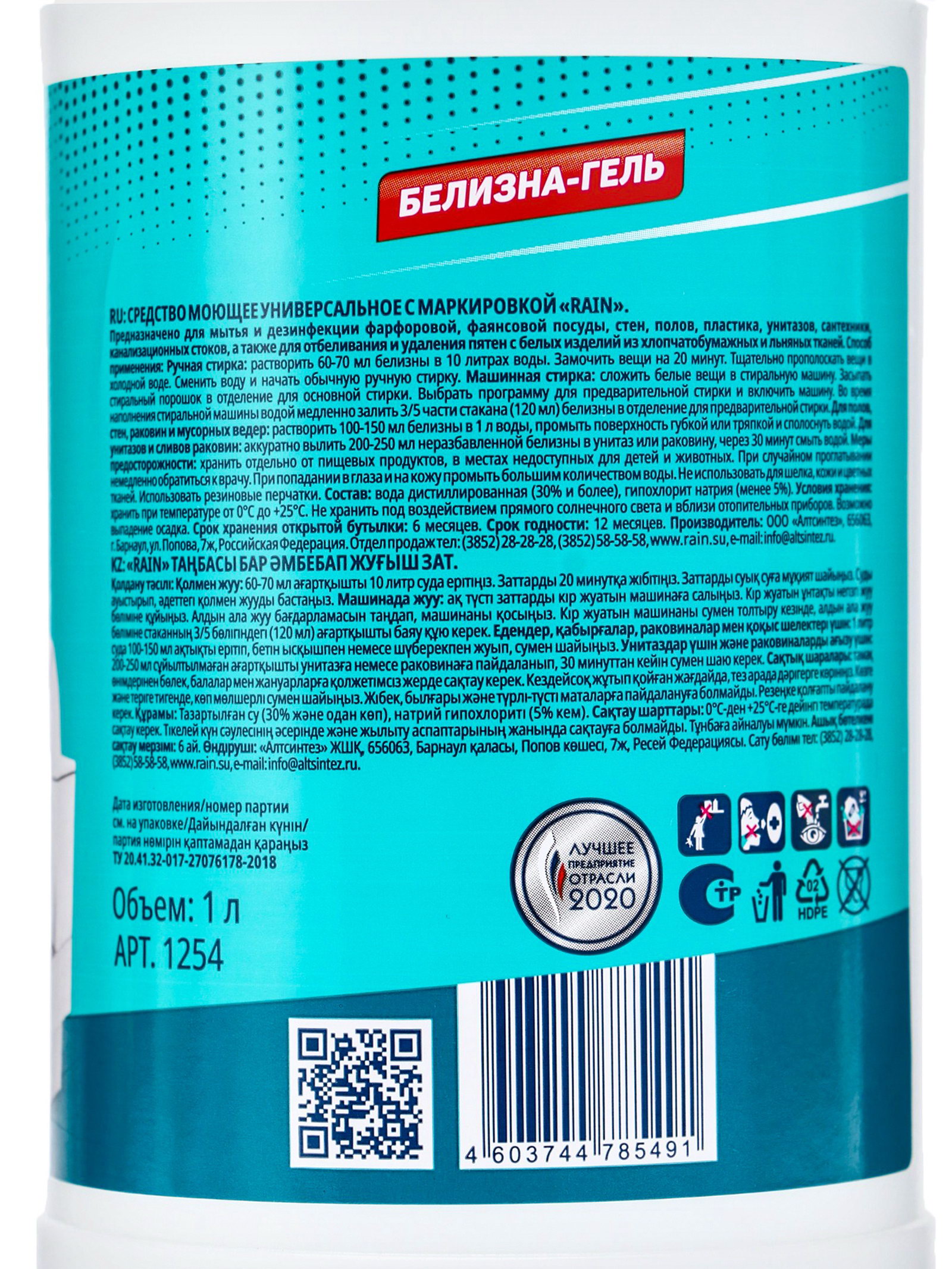 Универсальное моющее средство Rain Белизна-гель 1 л, Россия