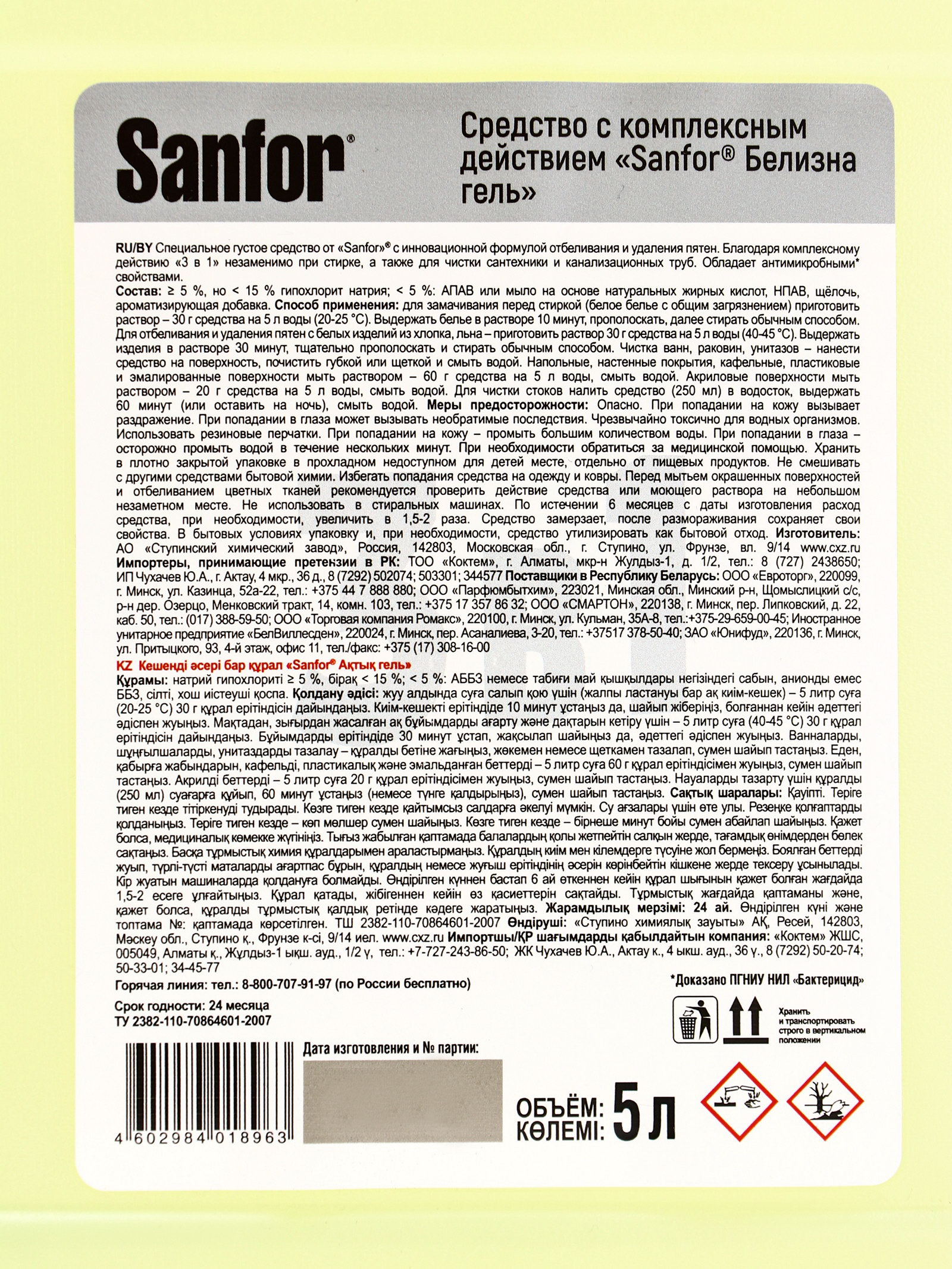 Белизна гель 3 в 1 5 л, Sanfor, Россия