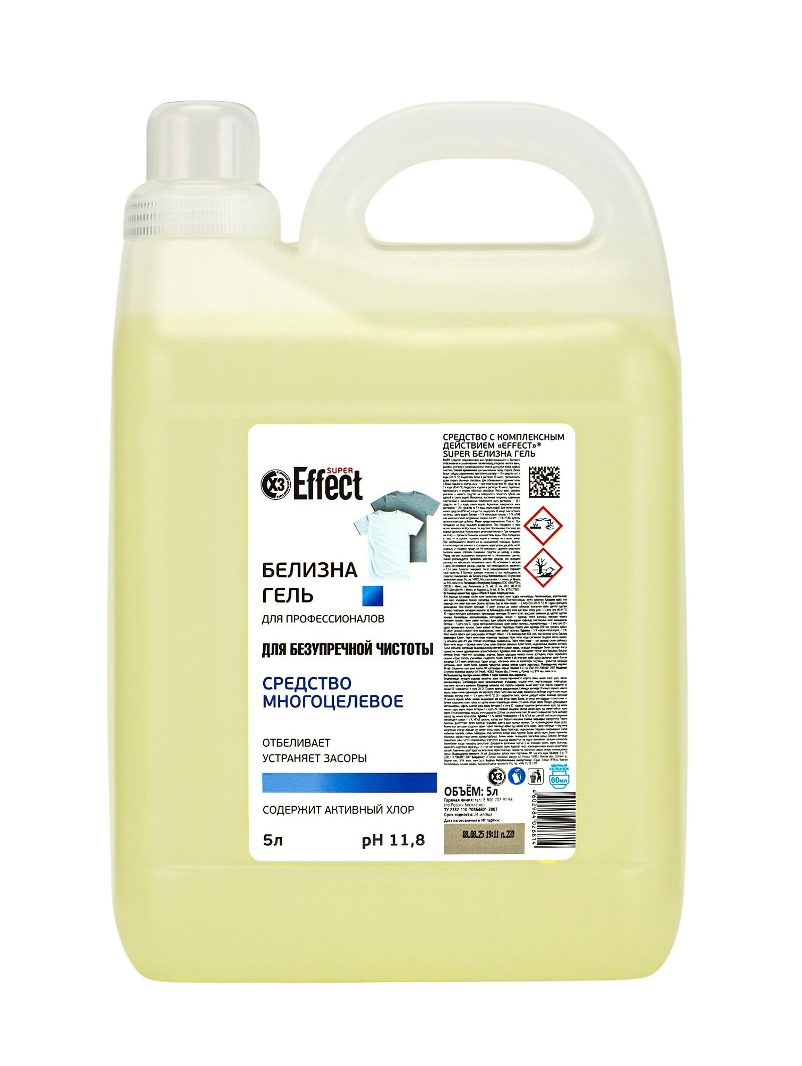 Универсальное средство с комплексным действием SUPER, белизна гель, 5 л, 5000 мл., Effect, Россия