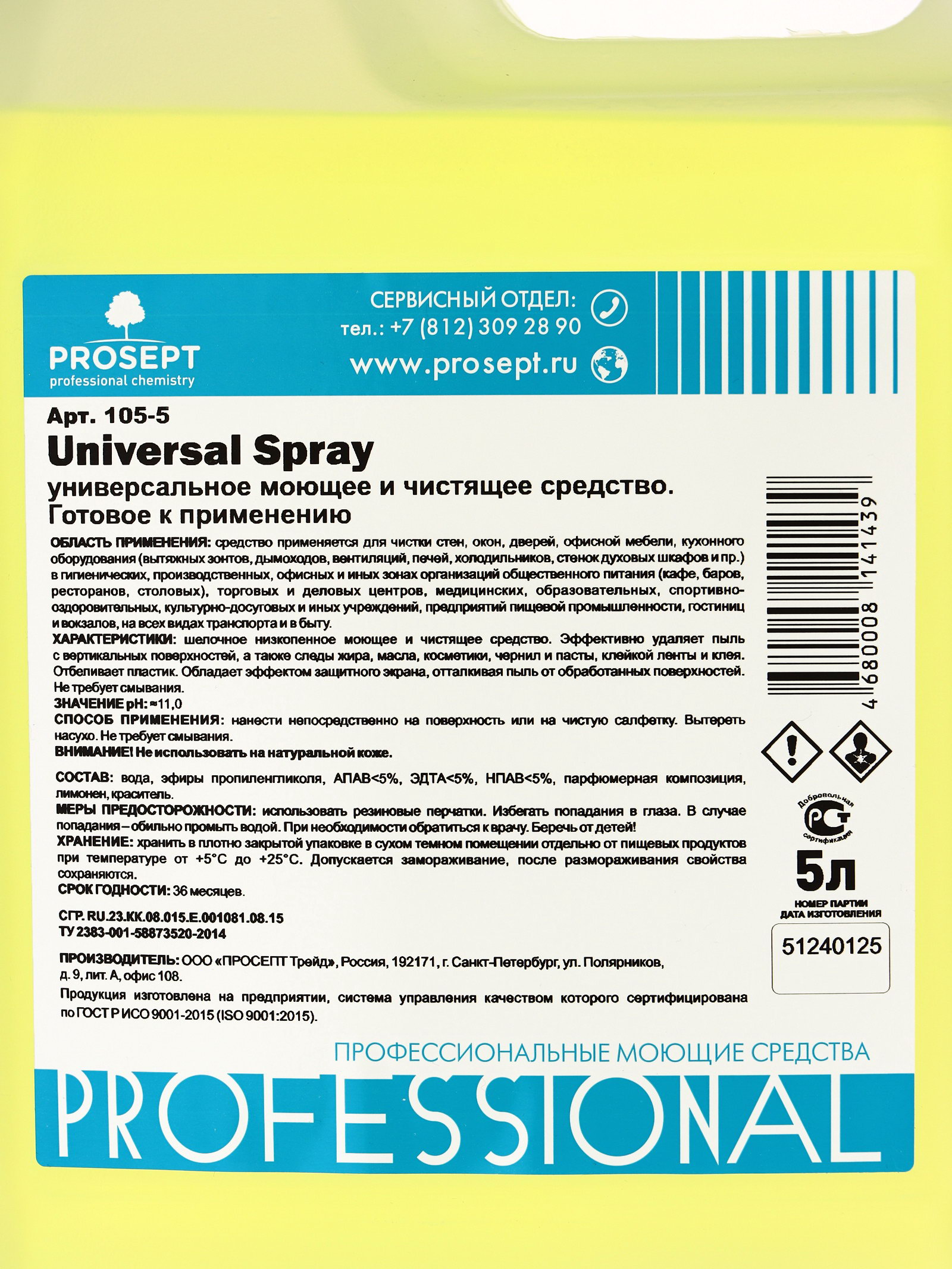 Универсальное моющее и чистящее средство Universal Spray, готовое к применению, 5 л, 500 мл., PROSEPT, Россия