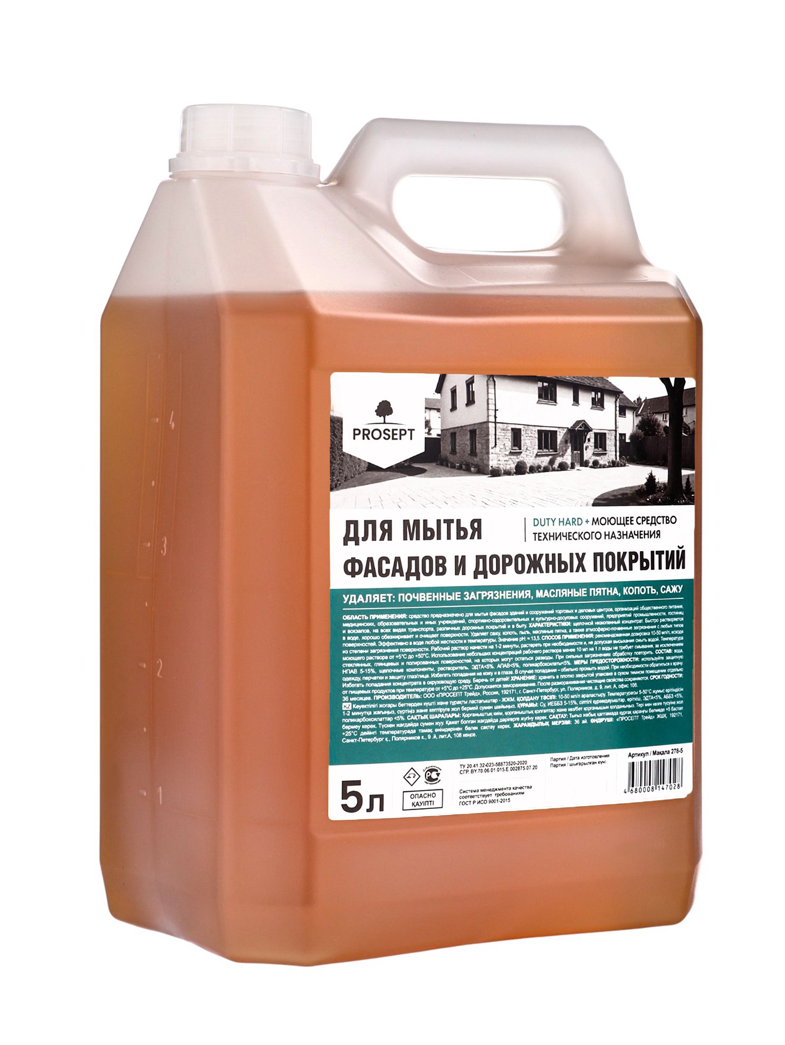 Средство для мытья фасадов и дорожных покрытий Duty Hard +, 5 л, 13x18.5x27.2 см., PROSEPT, Россия