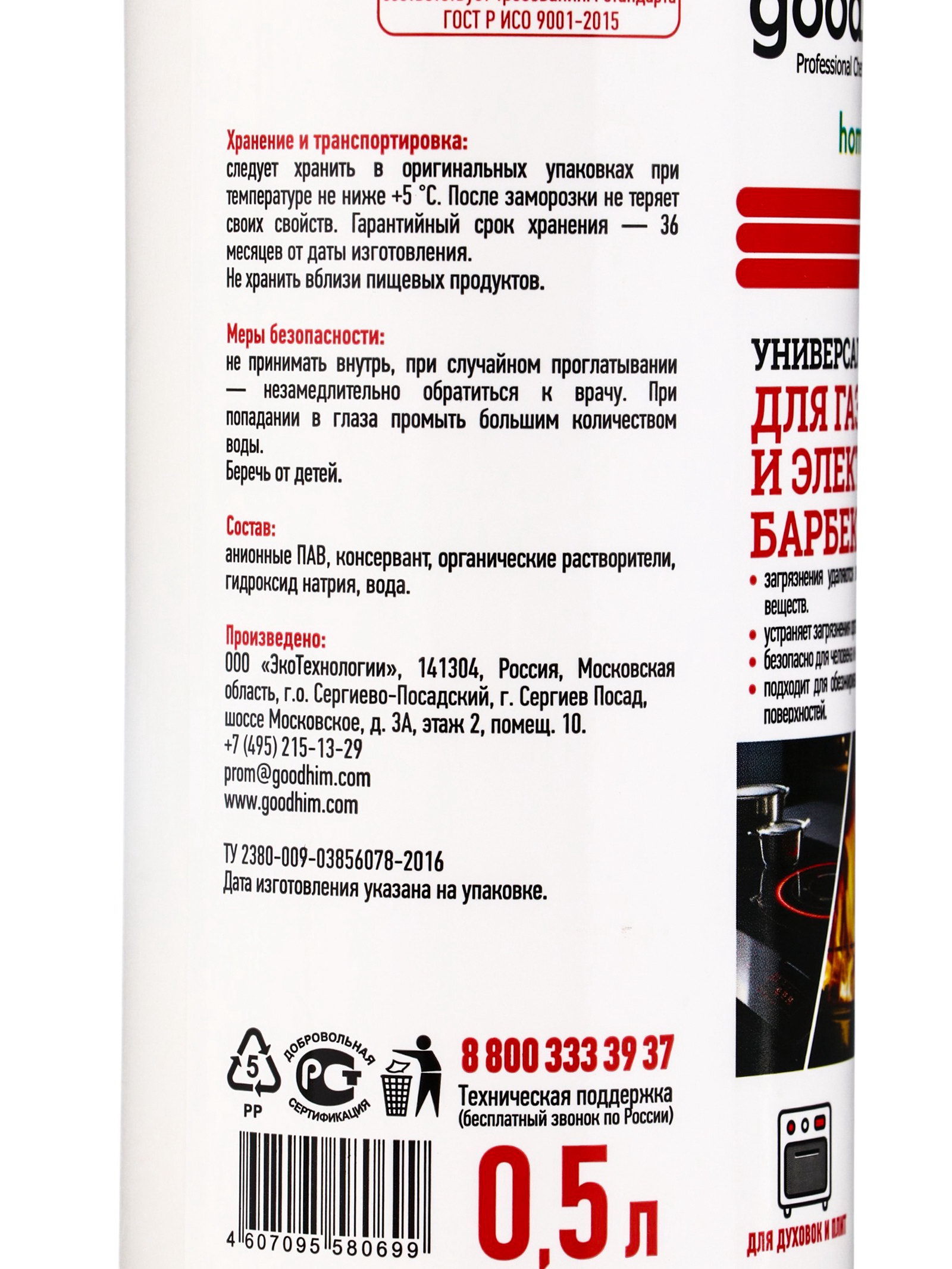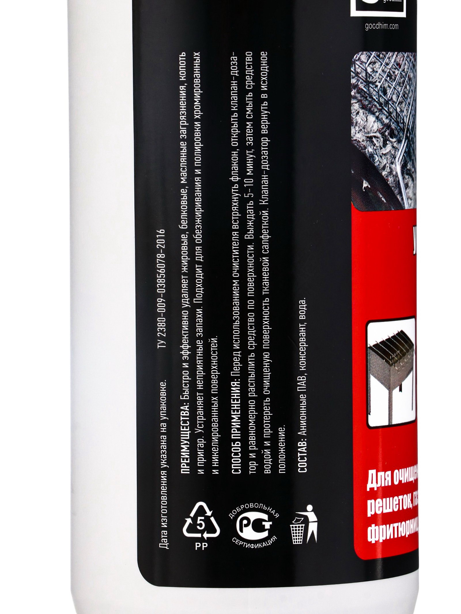 Универсальный очиститель для газовых и электрических плит, мангалов, барбекю, 0.5 л, Goodhim, Россия