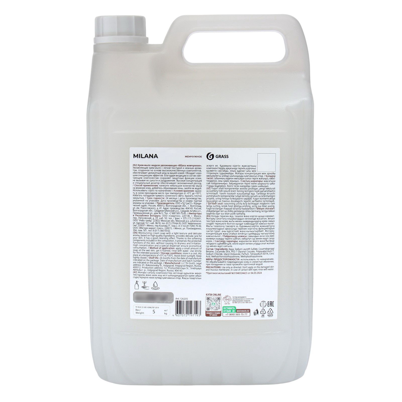 Жидкое крем-мыло Milana "Жемчужное", 5 л, GRASS, Россия