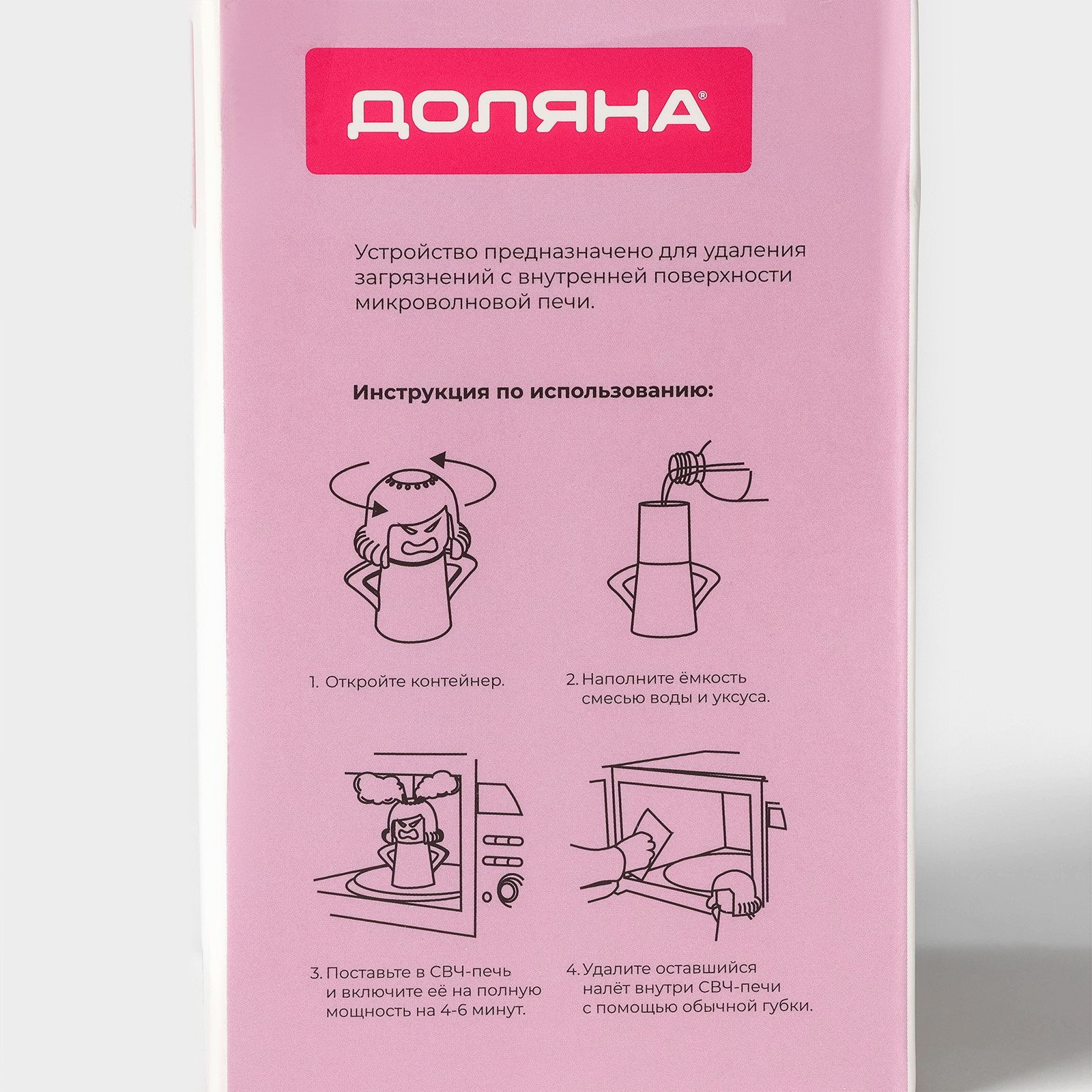 Размер упаковки: 8.5 x 17 x 11 см. Назначение: Для кухонной техники Цвет: Фиолетовый tnved: 3924900000 tnved: 3924900000 Аромат: Без аромата Устройство предназначено для удаления застарелых загрязнений с внутренних поверхностей микроволновых печей. Как им пользоваться