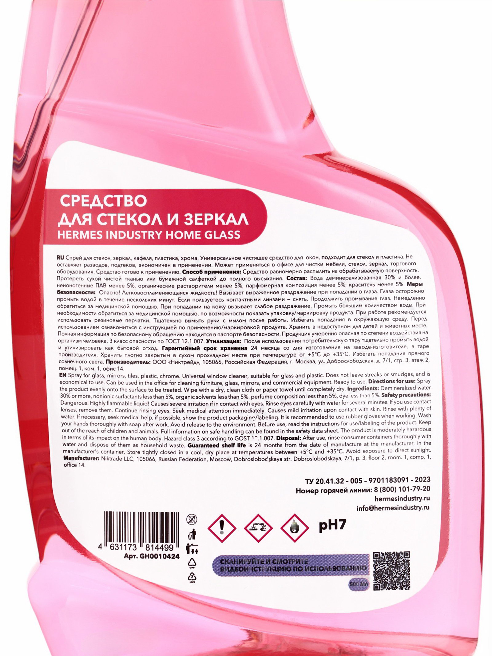 Размер упаковки: 5 x 25.5 x 10 см. Температурное ограничение: Нет Запрет реализации по сегментам: 00000000208 Аромат: Барбарис tnved: 3402909000 tnved: 3402909000 Спрей для стекол и зеркал Hermes Industry HOME с ароматом Барбариса, 500 мл это идеальное средство для поддержания чистоты стеклянных и зеркальных поверхностей в вашем доме. С его помощью вы сможете быстро и без усилий привести в порядок окна, зеркала, стеклянные столы, витрины и другие стеклянные элементы интерьера, оставив их идеально чистыми и без разводов. Этот спрей сочетает в себе мощную моющую формулу с деликатным уходом за поверхностями. Hermes Industry HOME эффективно удаляет грязь, пыль, отпечатки пальцев, следы от воды и другие загрязнения, придавая стеклянным и зеркальным поверхностям не только идеальную прозрачность, но и яркий блеск. Его формула специально разработана для предотвращения появления разводов и пятен, что гарантирует безупречный результат при каждом использовании. Спрей для стекол и зеркал Hermes Industry HOME с ароматом Барбариса не только очистит поверхность, но и наполнит ваш дом приятным, свежим и немного сладким ароматом, который создаёт атмосферу уюта и чистоты. Аромат Барбариса остаётся в воздухе после применения, даря приятные ощущения и создавая ощущение свежести в вашем доме. Удобная упаковка объёмом 500 мл с распылителем делает процесс уборки быстрым и лёгким. Средство быстро высыхает и не требует долгого времени для полировки, что позволяет экономить ваше время и усилия. С Hermes Industry HOME уборка становится приятным и эффективным процессом, оставляя в вашем доме только чистоту и гармонию. Преимущества продукта: