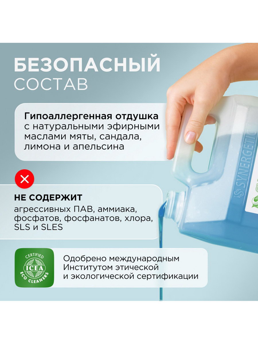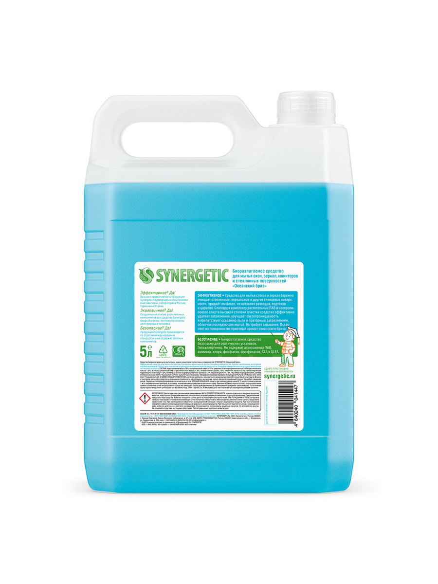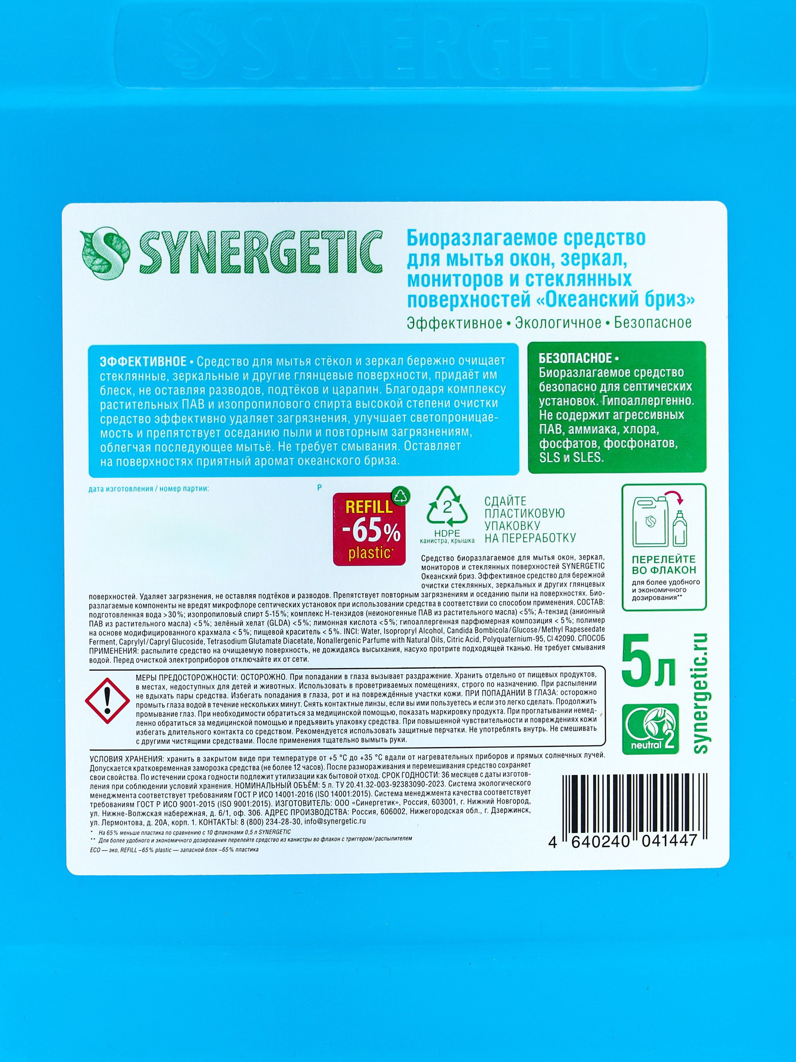 Средство для мытья окон и зеркал "Океанский бриз", 5 л, 5000 мл., Synergetic, Россия