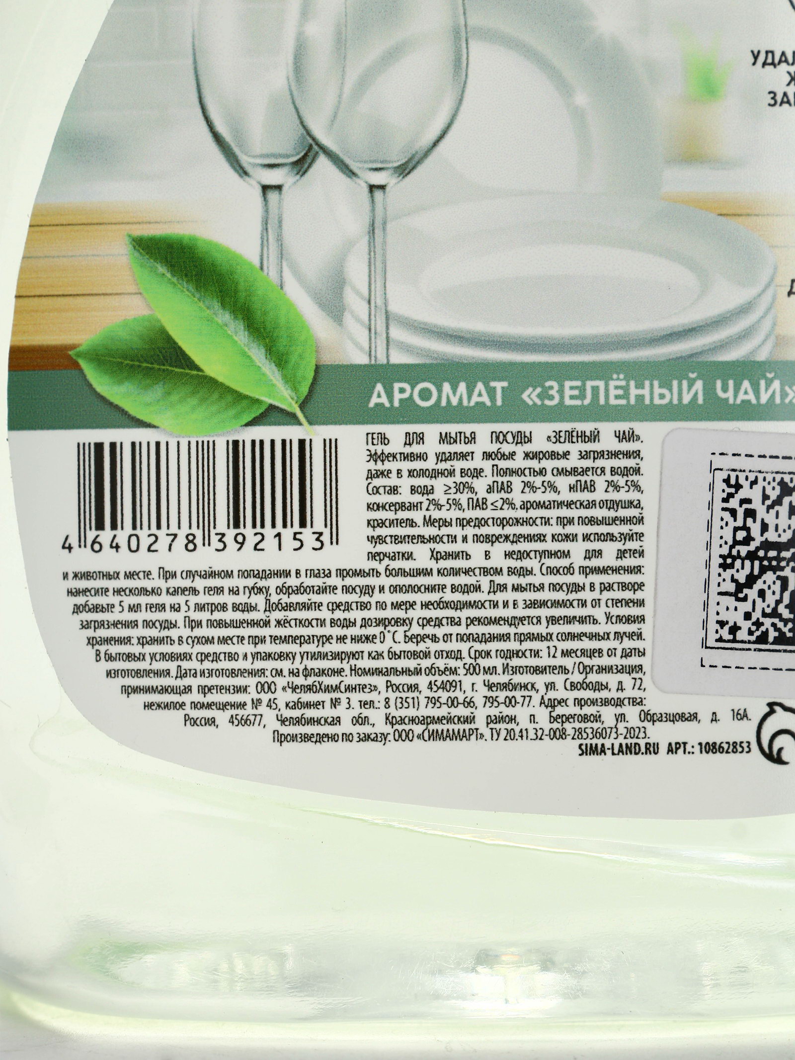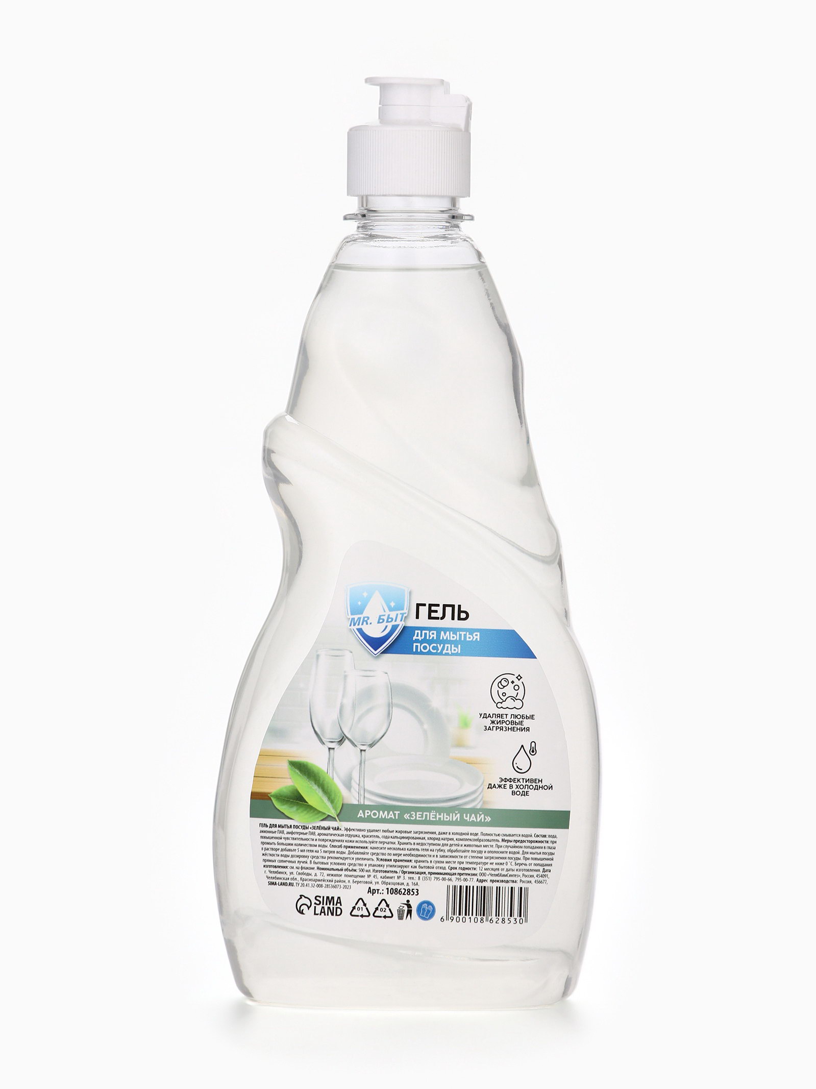 Гель для мытья посуды, 500 мл, аромат зелёный чай, Mr.Быт, Mr. Быт, Россия