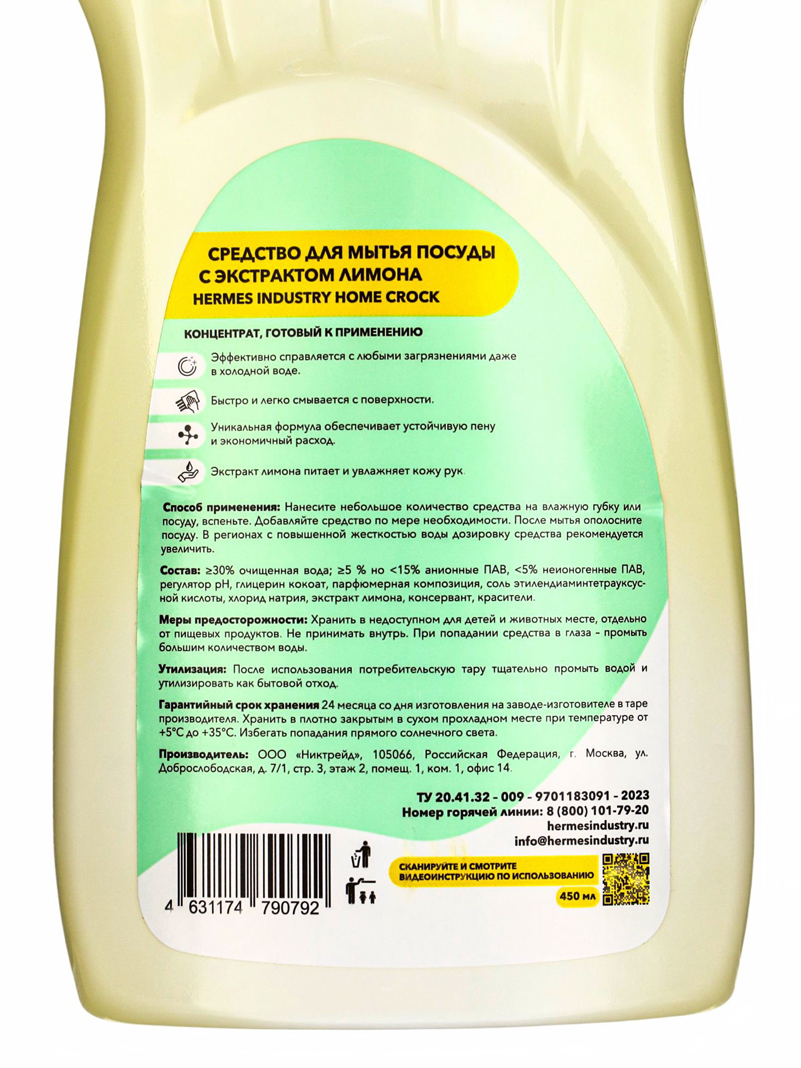 Гель для мытья посуды HOME с ароматом лимона, 450 мл, Hermes industry, Россия