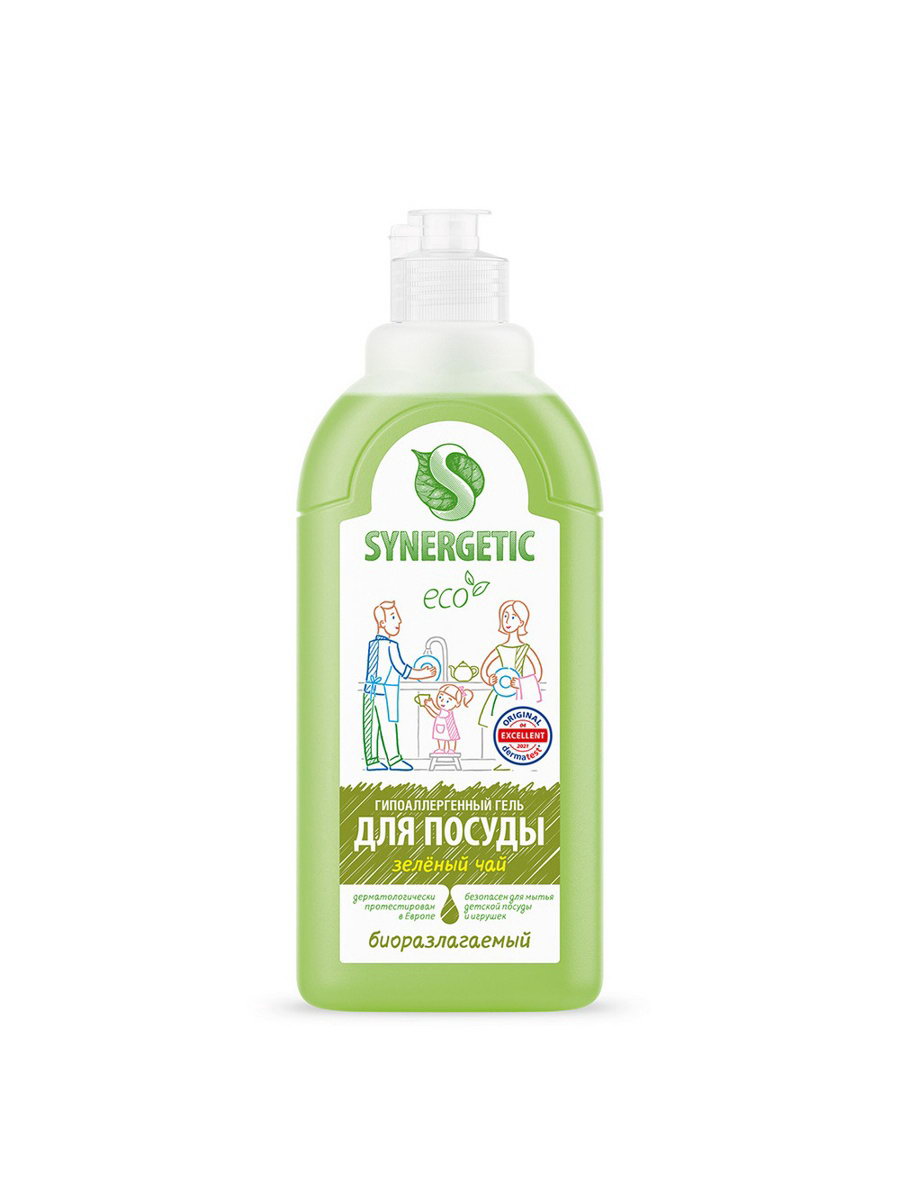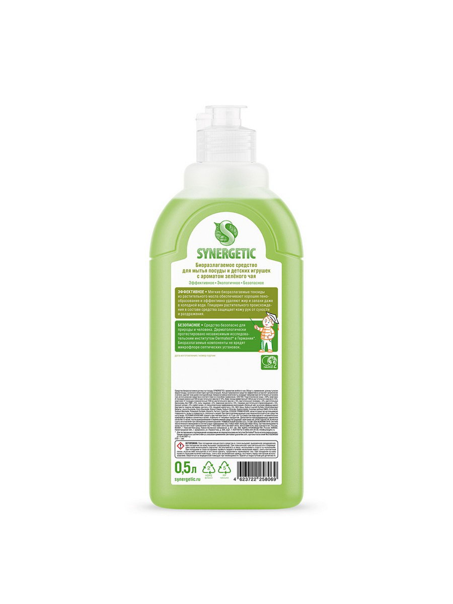 Средство для мытья посуды "Зеленый чай", гель антибактериальный, биоразлагаемый, 500 мл, Synergetic, Россия
