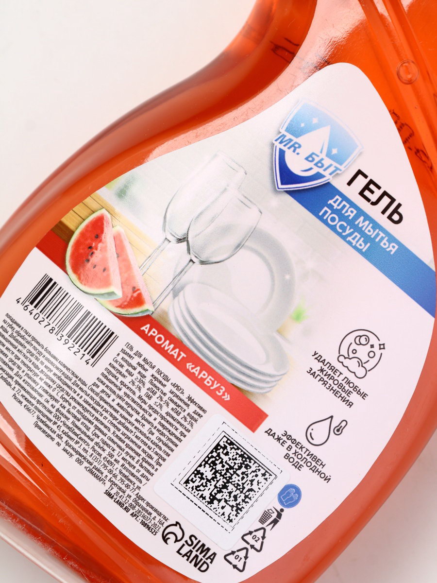 Гель для мытья посуды, 500 мл, аромат арбуз, Mr.Быт, Mr. Быт, Россия